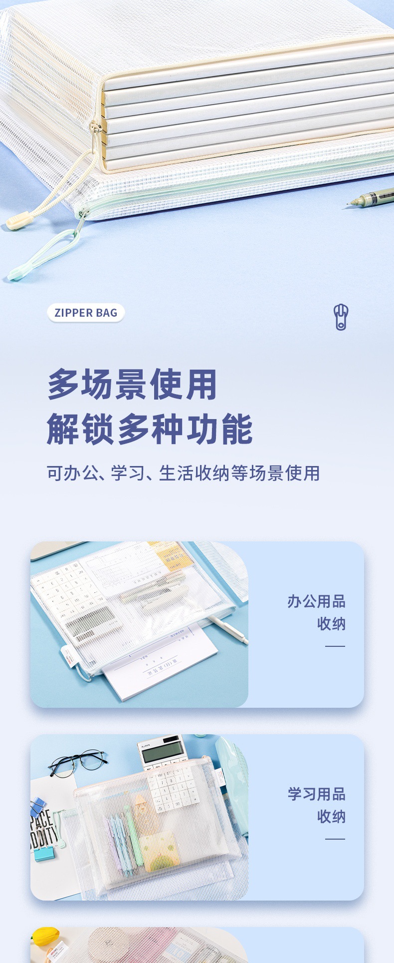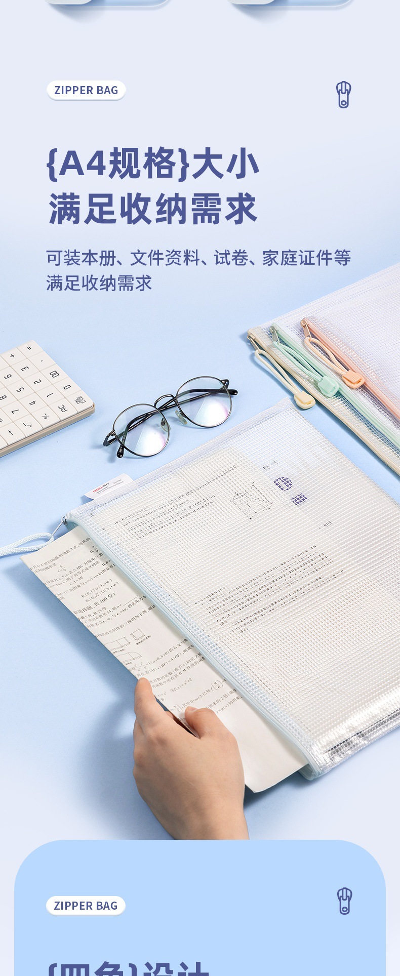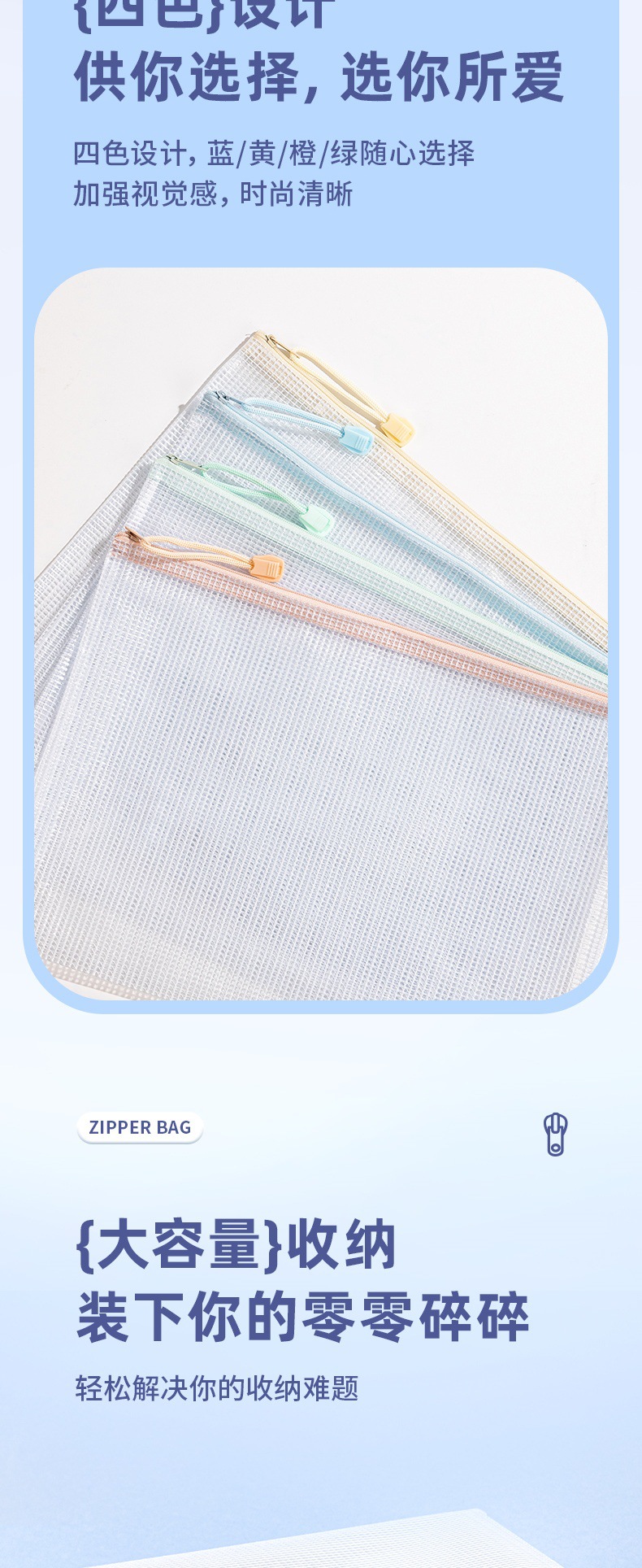 델리 63479 A4 지퍼 가방 두꺼운 메쉬 학생 시험 가방 테스트 종이 보관 가방 투명 방수 정보 가방스토어 가기