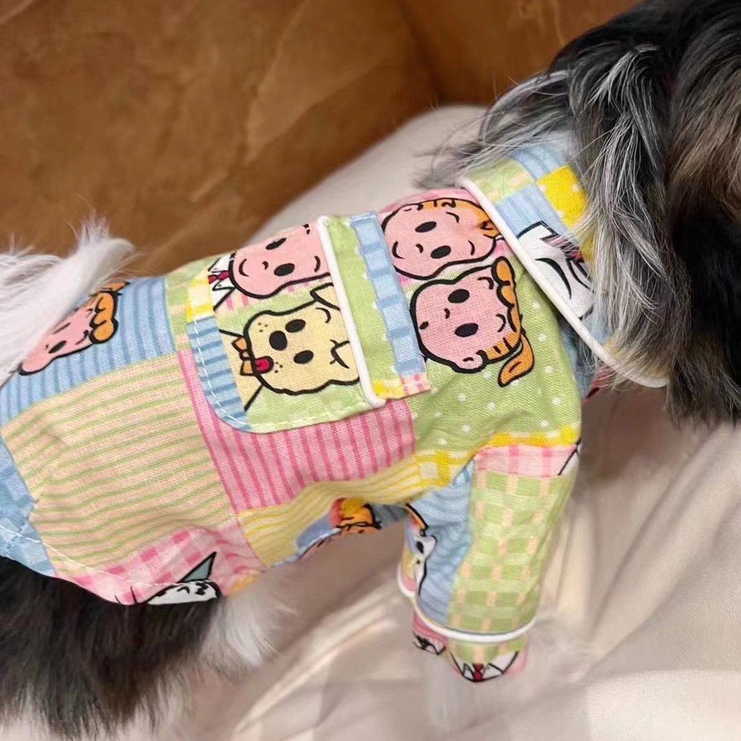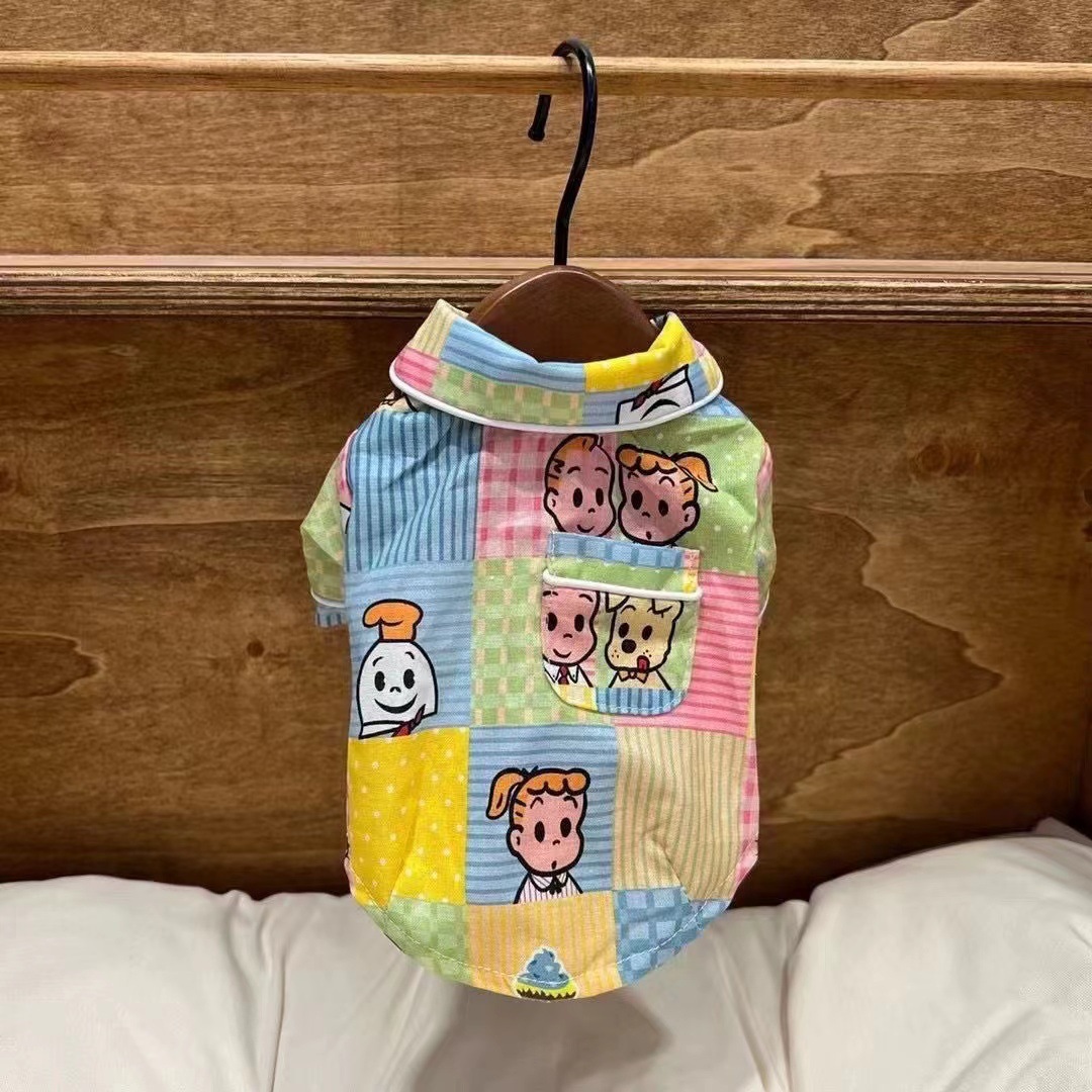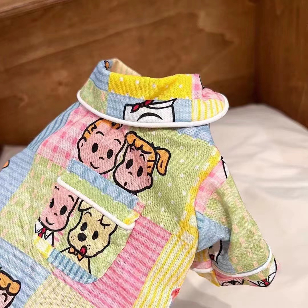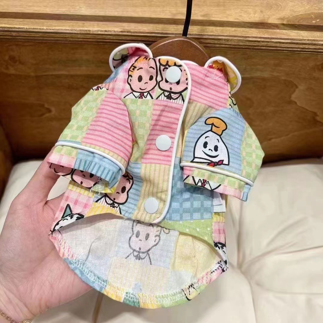 봄과 여름 새로운 애완 동물 고양이와 개 사탕 색 귀여운 만화 인쇄 셔츠 몰타 옷스토어 가기