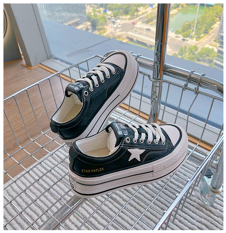 1층 소가죽 화이트 슈즈 여성용 2026 봄 신상 두꺼운 밑창 키높이 캐주얼 패션 여성 신발 운동화스토어 가기