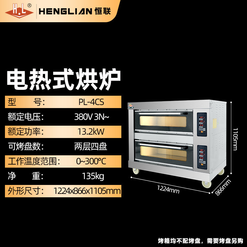 Henglian 전기 오븐 상업용 2층 4플레이트 3층 6플레이트 토스트 케이크 피자 오븐 온도 조절 베이킹 전기 오븐스토어 가기
