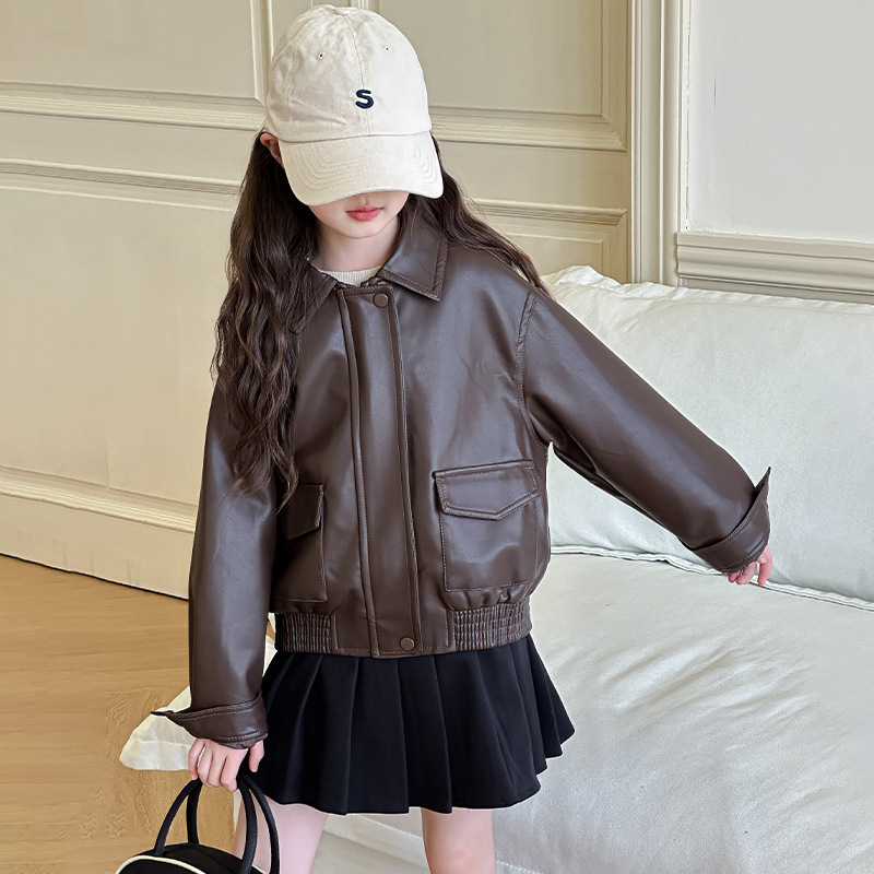 소녀 가죽 자켓 2024 새로운 도착 CUHK 어린이 PU 가죽 자켓 소녀 패션 레트로 탑 트렌디 아동복스토어 가기