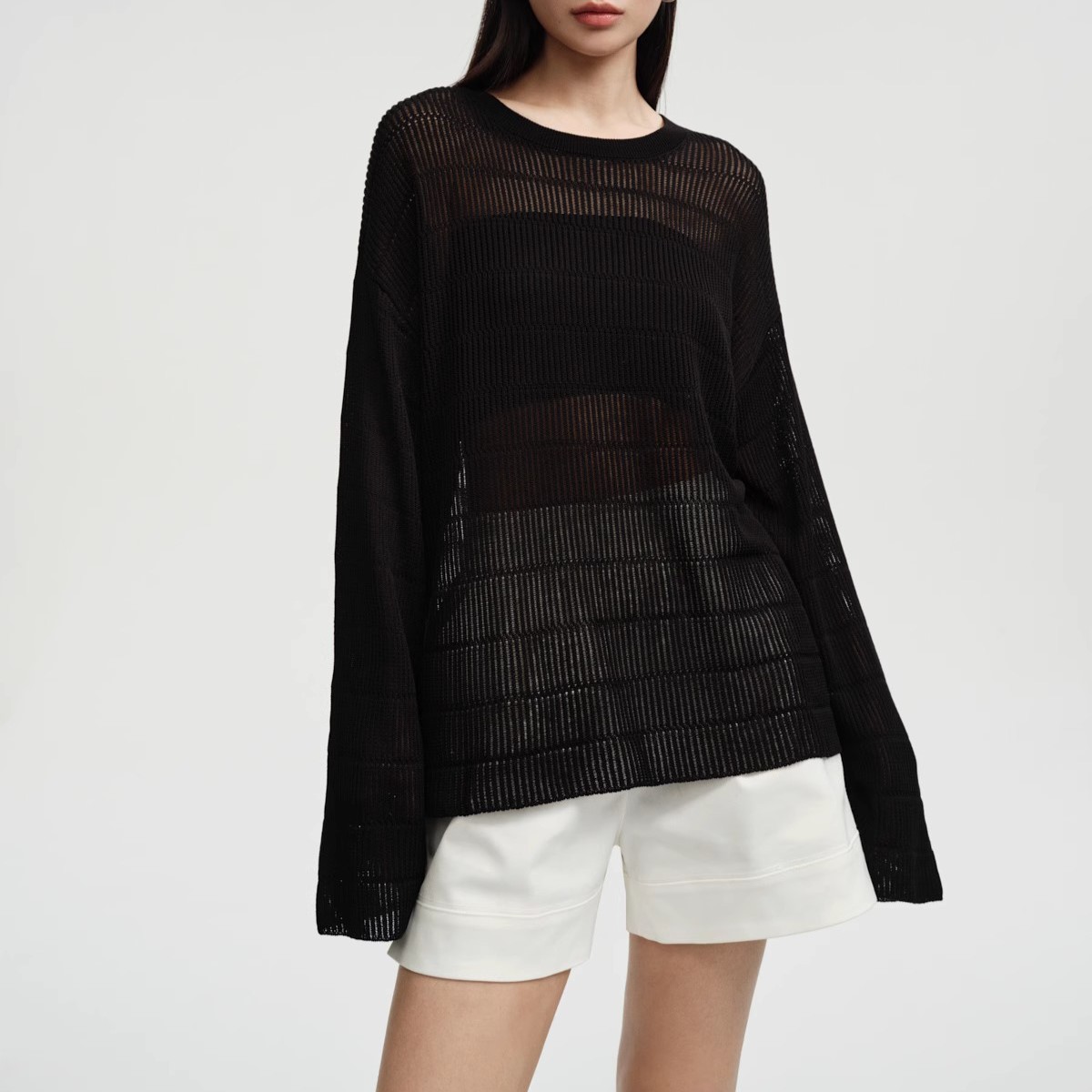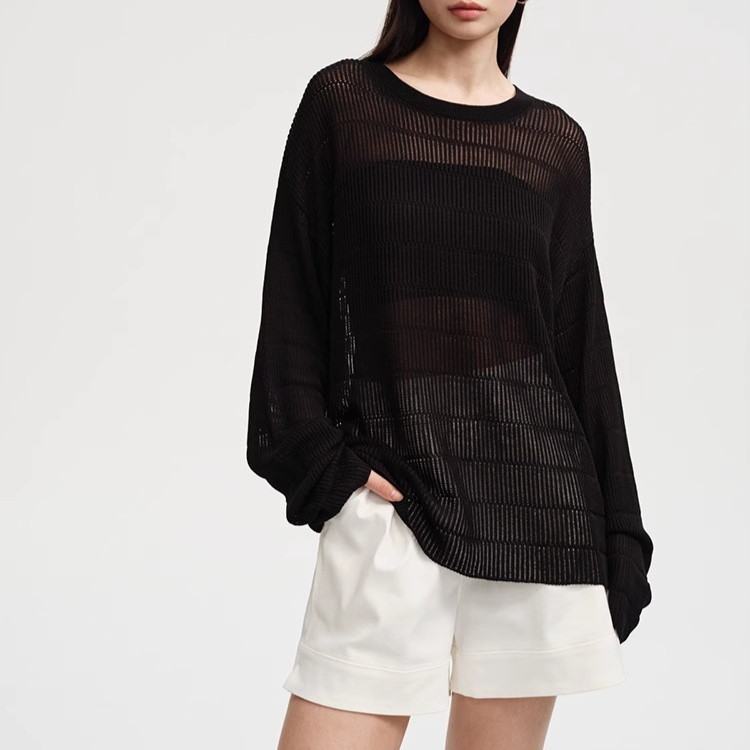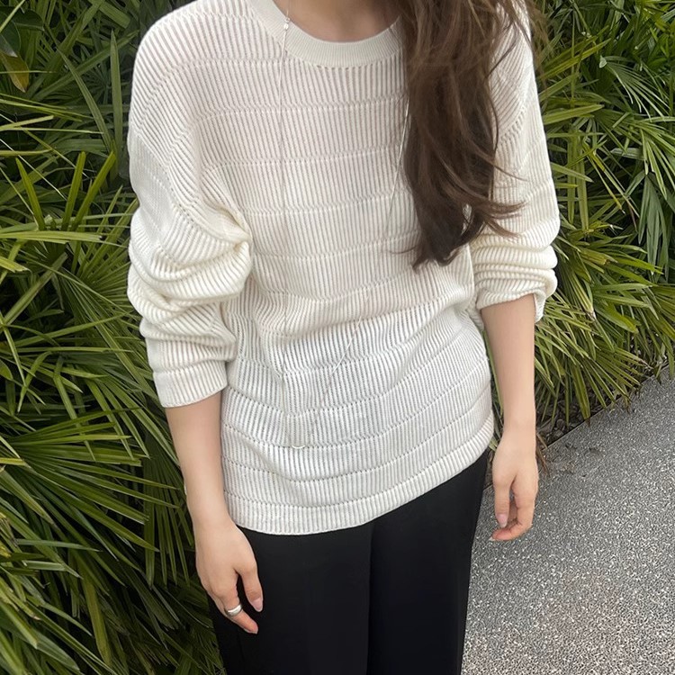 STUDIOS 봄/여름 B-준비 ~ Tencel 울 할로우 니트 스웨터 여성용 루즈 올 매치 게으른 스타일 블라우스