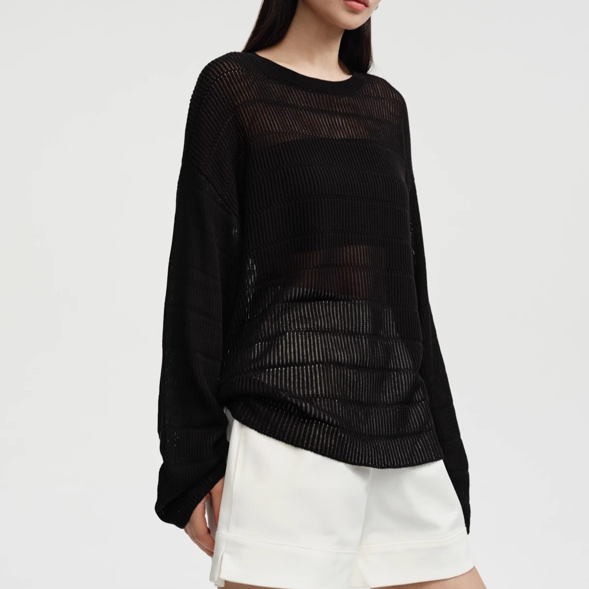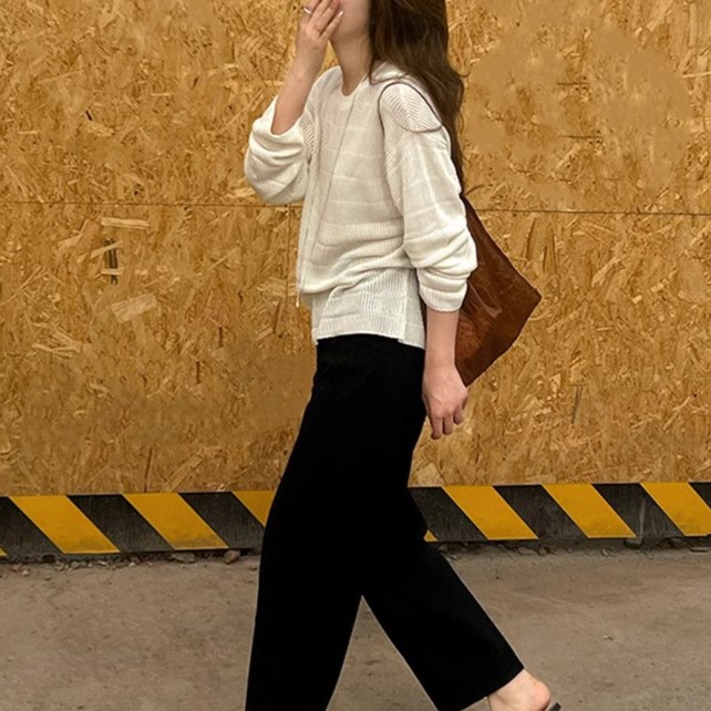 STUDIOS 봄/여름 B-준비 ~ Tencel 울 할로우 니트 스웨터 여성용 루즈 올 매치 게으른 스타일 블라우스스토어 가기