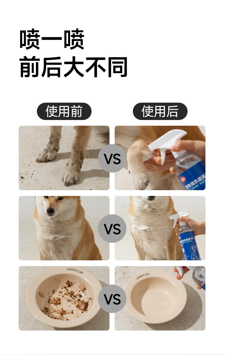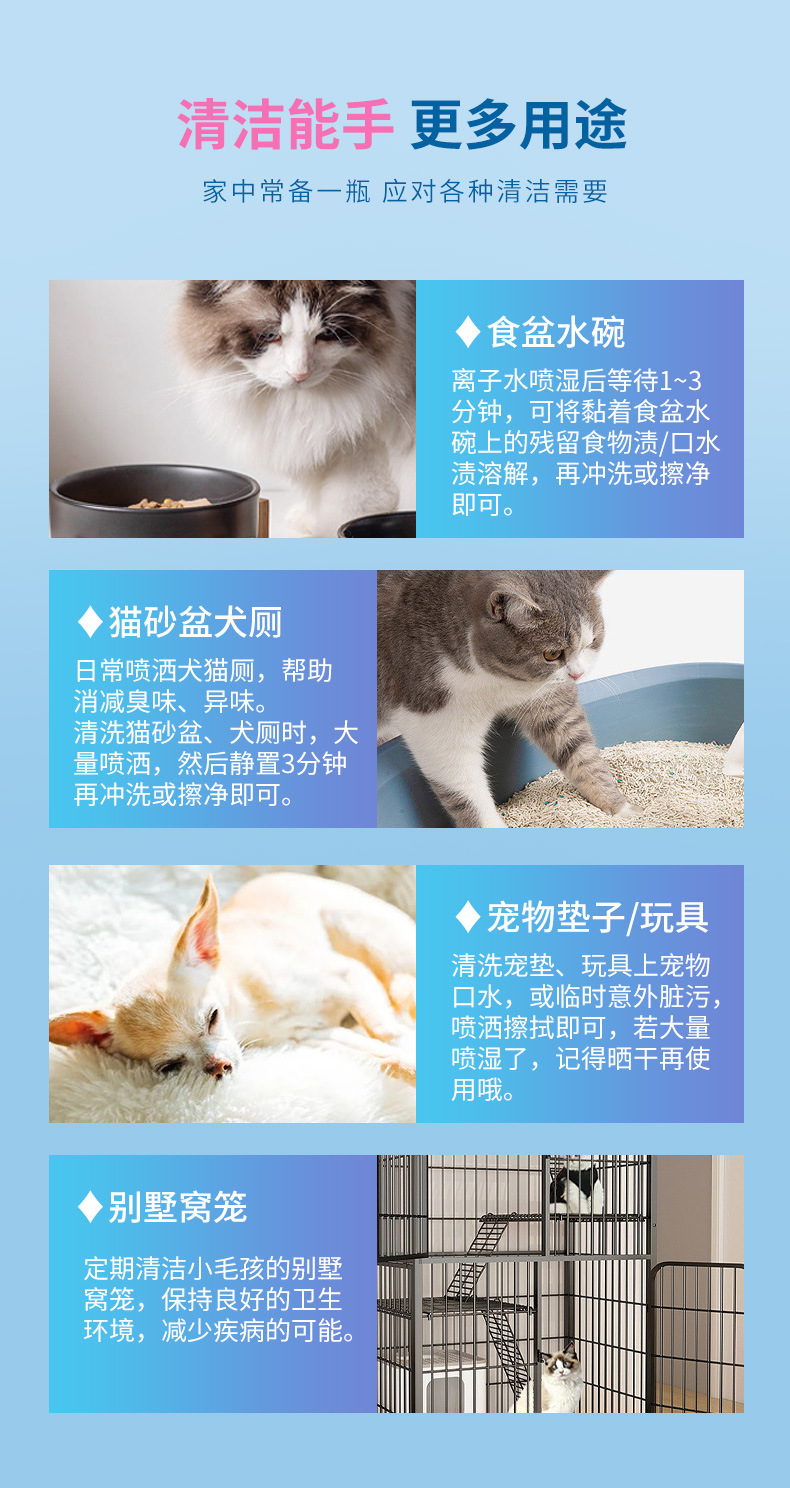 고성능 애완 동물 이온 물 애완 동물 용품 청소 물 홈 개 고양이 탈취제 청소 소독 물