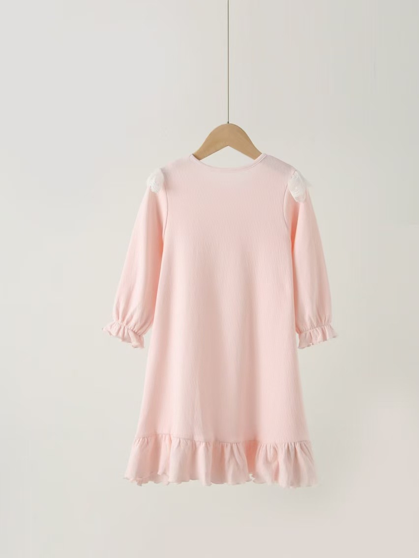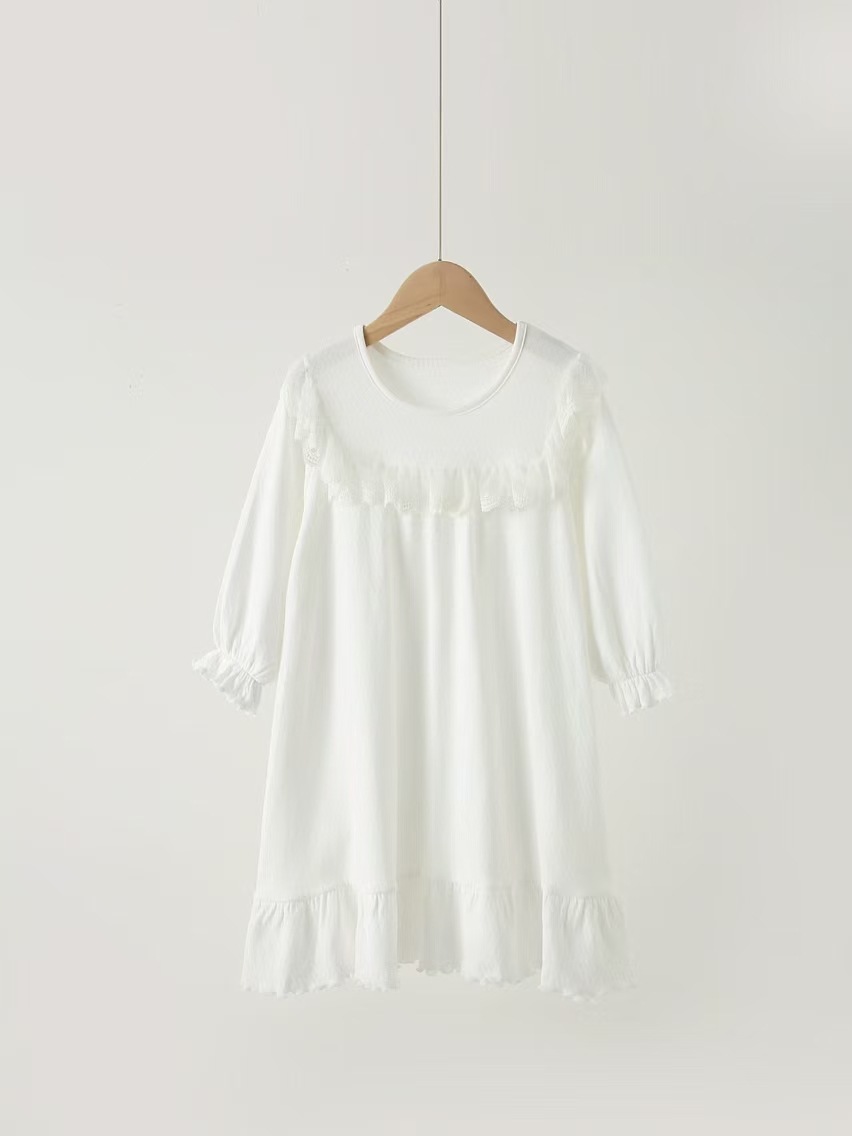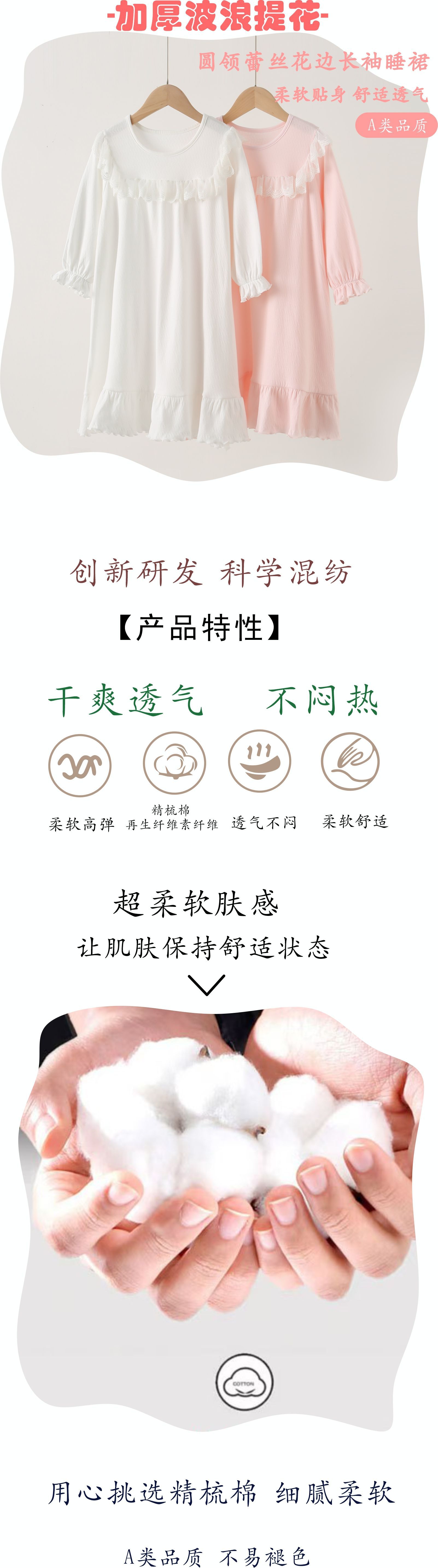 24 년 가을과 겨울 새로운 두꺼운 웨이브 긴 소매 소녀 원피스 아래쪽 레이스 잠옷을 입은 여자들