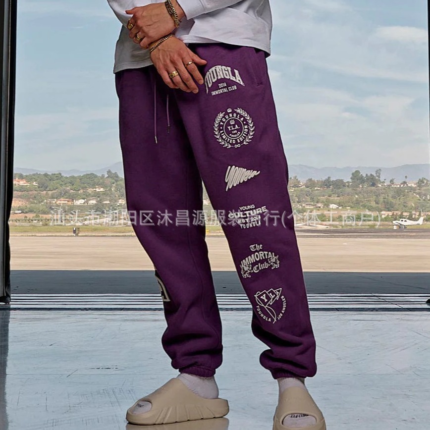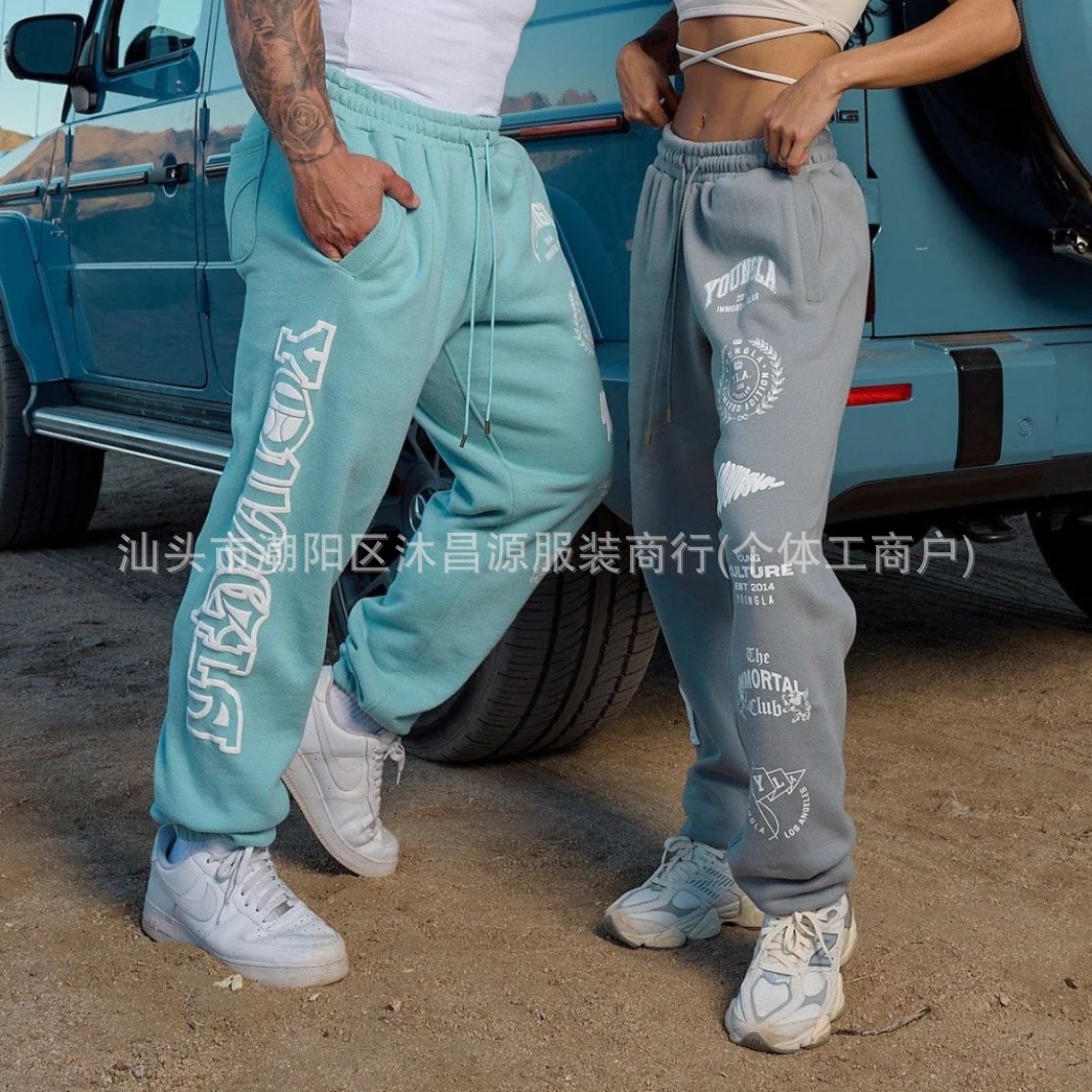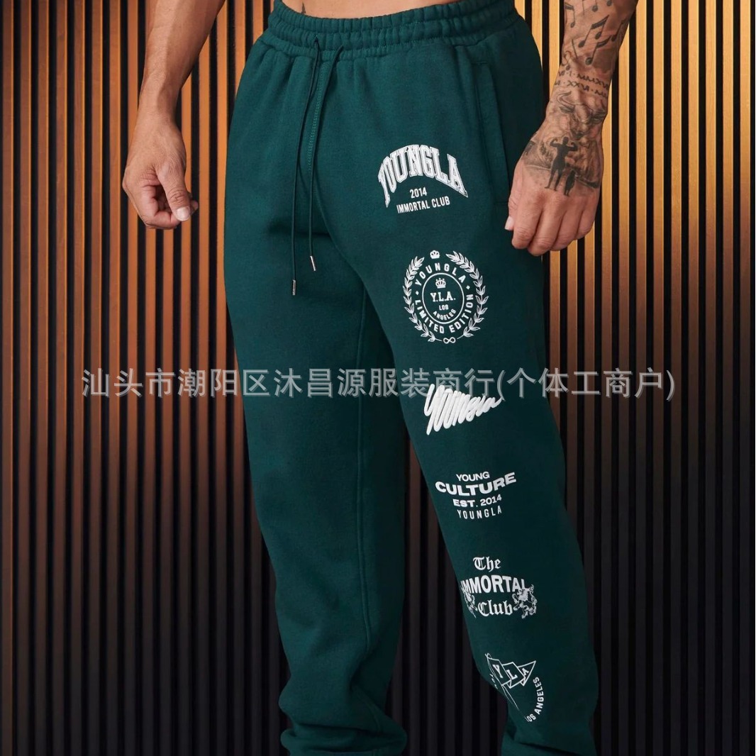 국경 간 느슨한 남성 스포츠 바지 패션 브랜드 스포츠 피트니스 스포츠 캐주얼 바지 면 인쇄 레깅스 공장 직접 판매