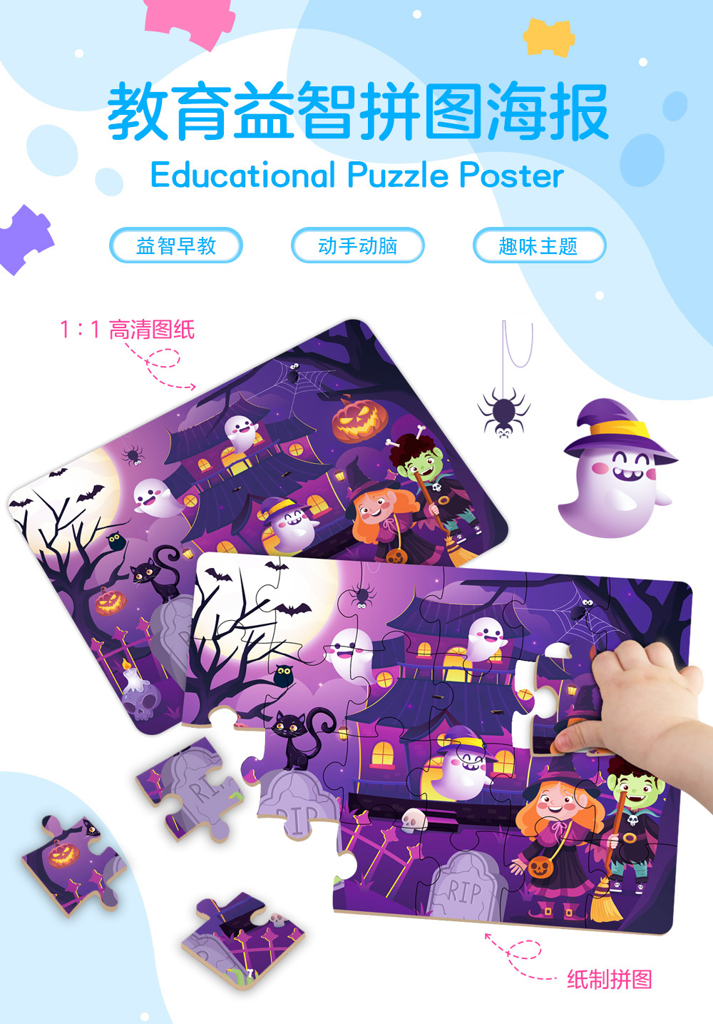 국경 간 신제품 어린이 퍼즐 3-6 세 조기 교육 교육 장난감 할로윈 테마 두꺼운 판지 종이 퍼즐스토어 가기