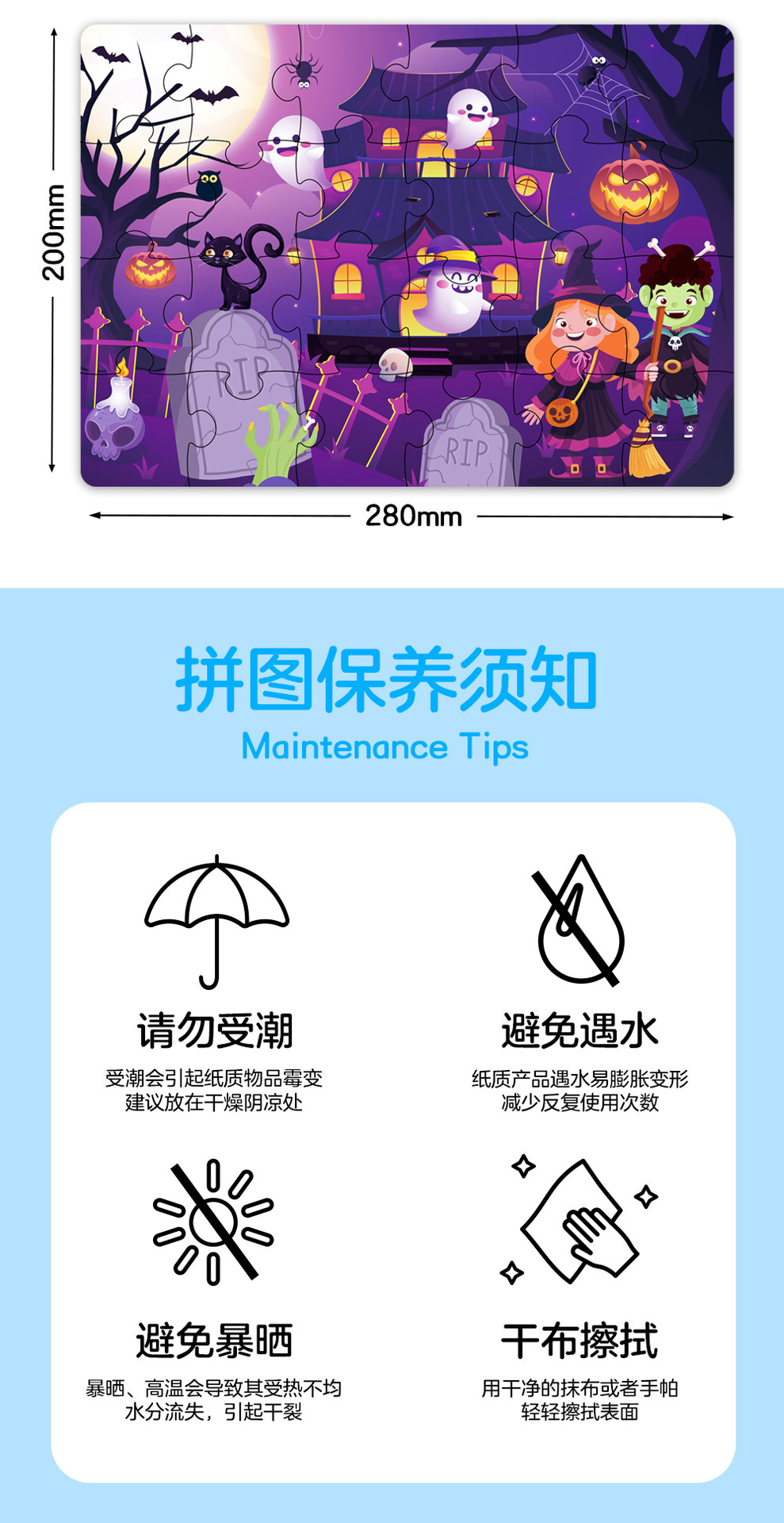 包装规格:1张拼图(24PCS)+1张说明书,opp袋包装