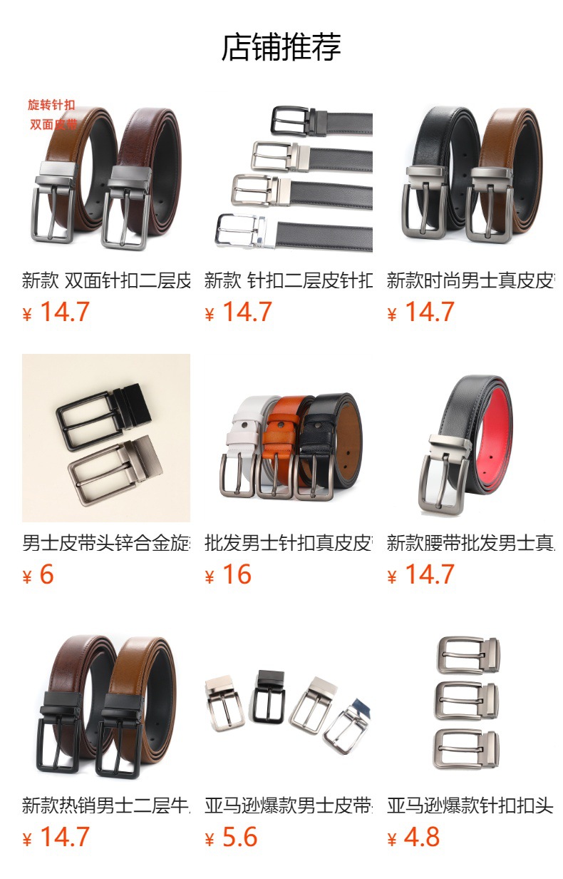 아마존의 인기 남성용 플레이트 버클 벨트, 부드러운 버클 가죽 벨트, 스트립 엣지 양면 천공 벨트