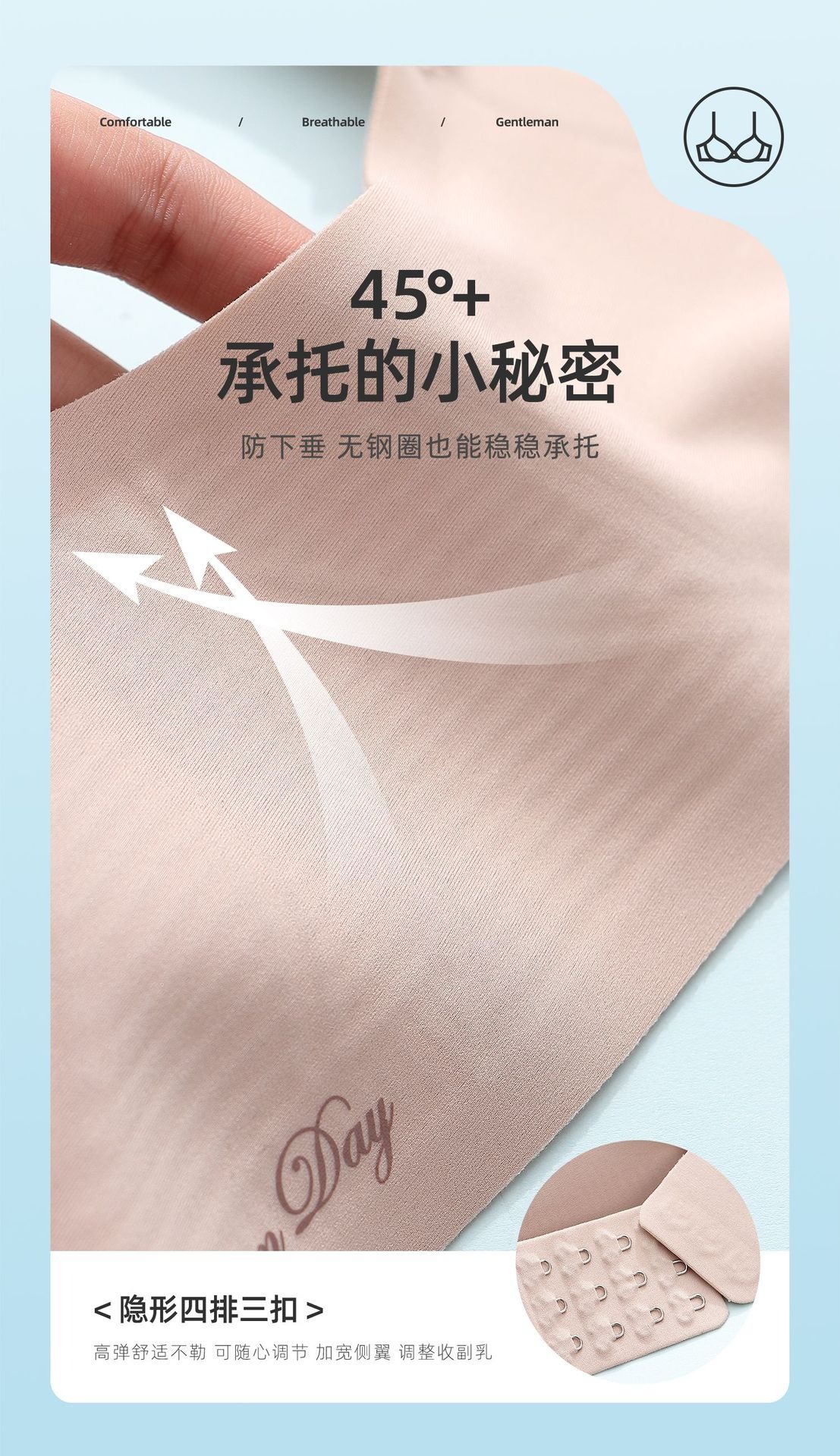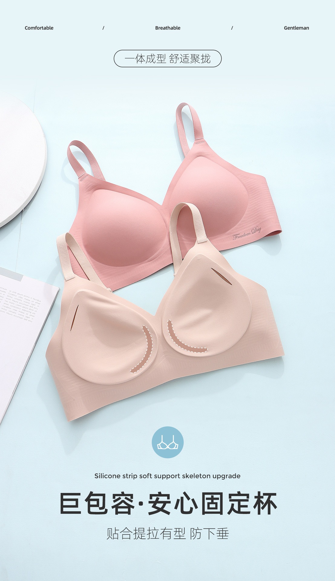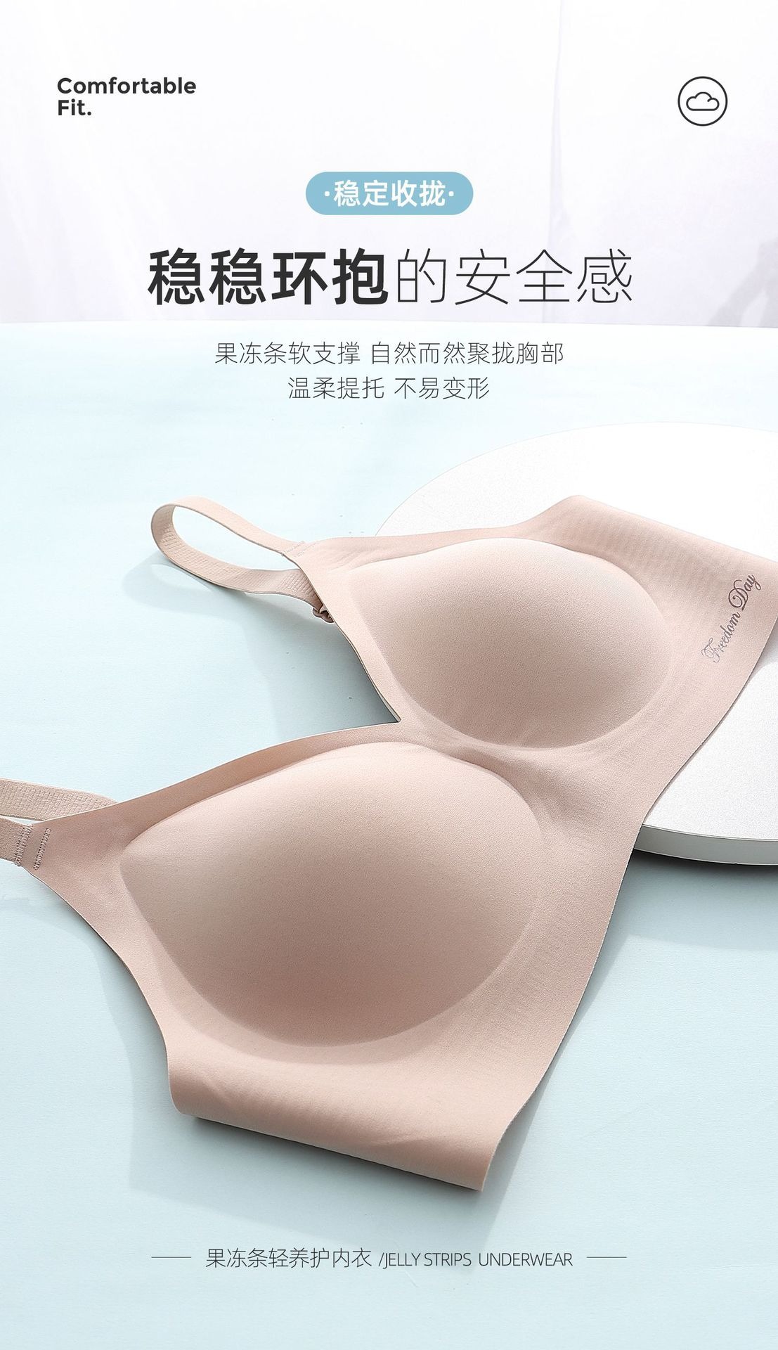 소프트 지원 비 마킹 젤리 스트립 유지 보수 속옷 여성의 작은 가슴 편안한 통기성 비 강철 반지 스포츠 브래지어