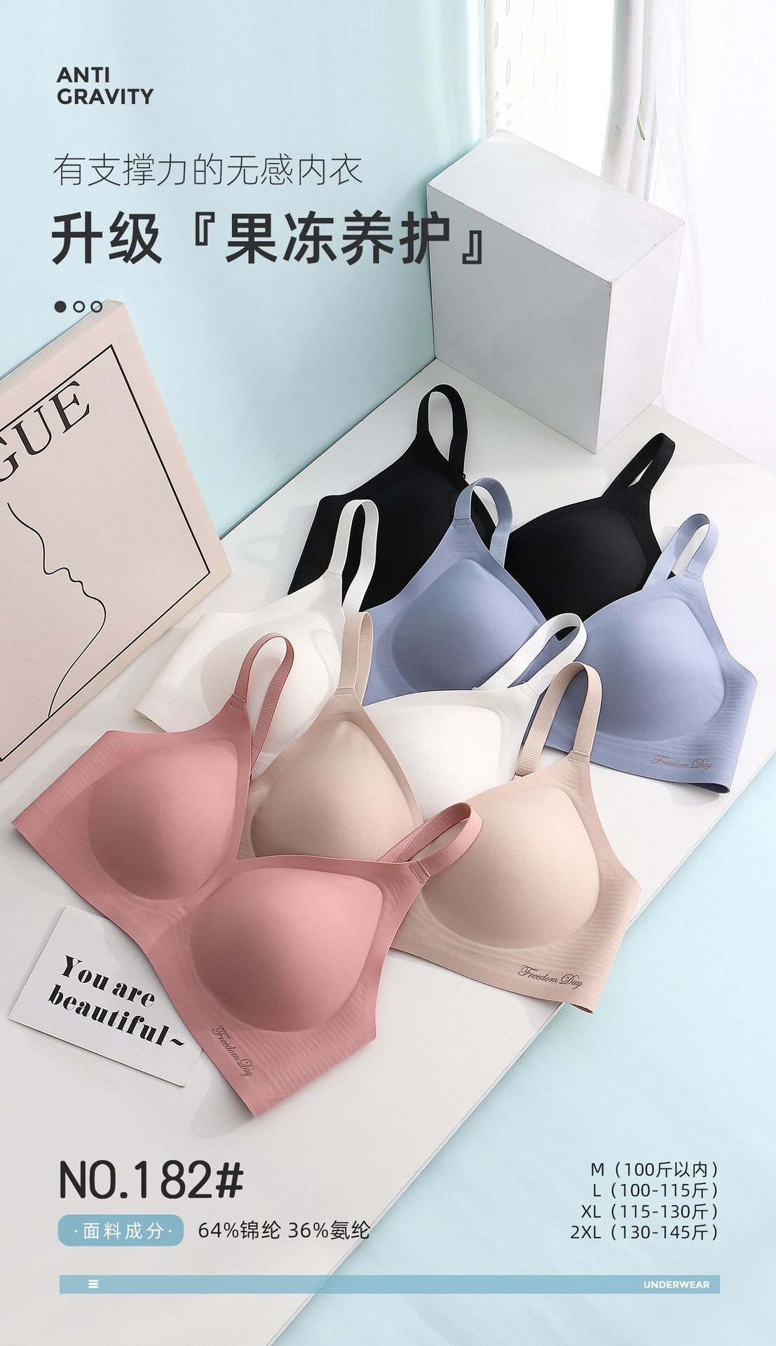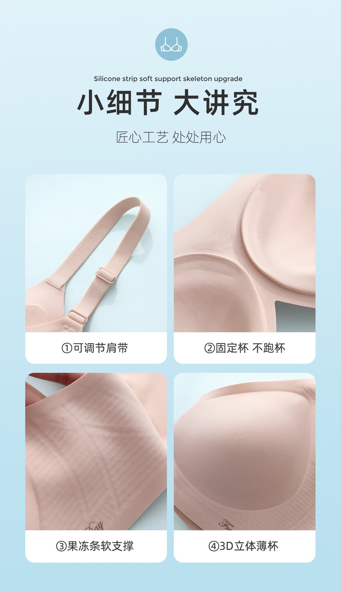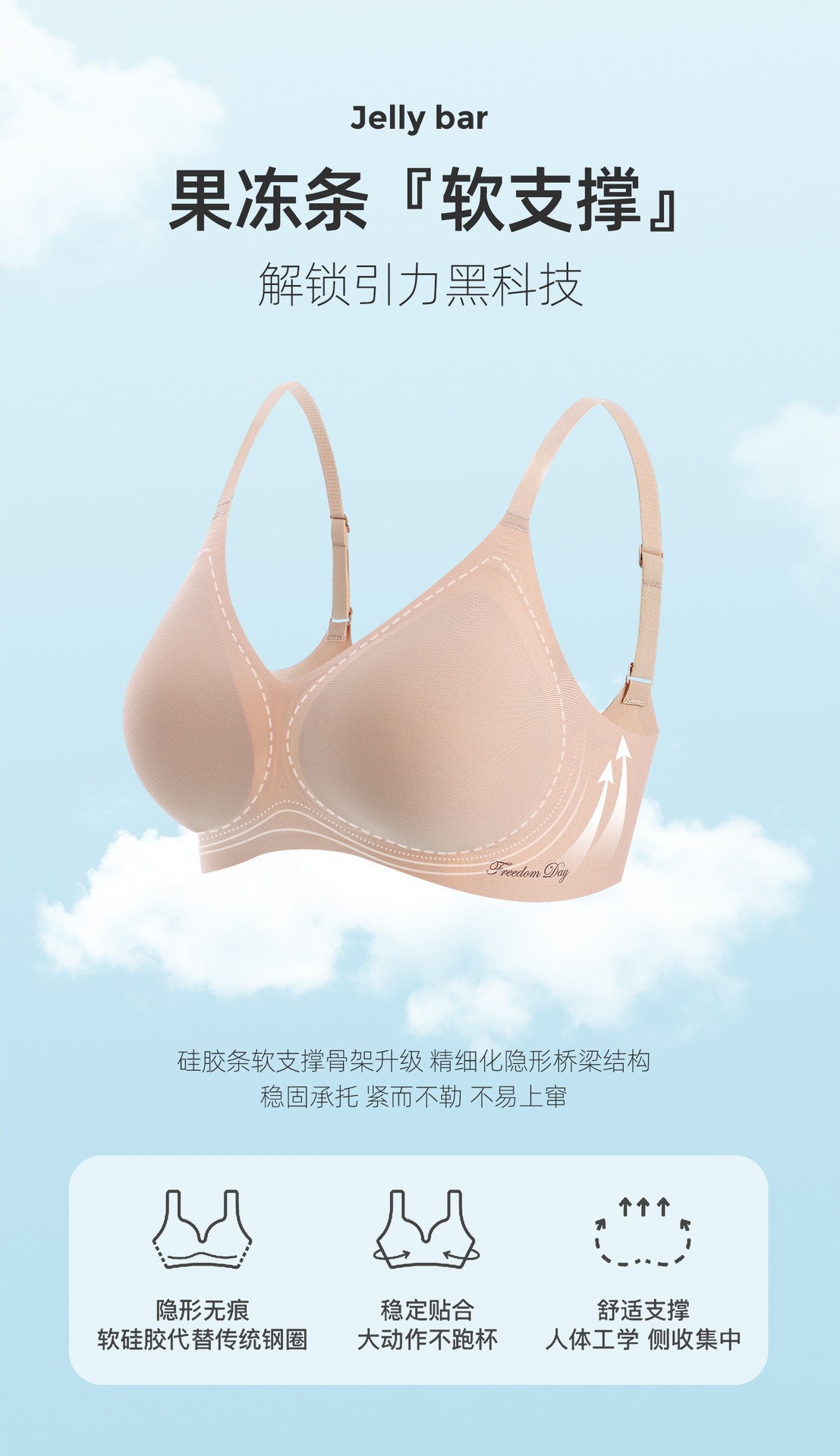 소프트 지원 비 마킹 젤리 스트립 유지 보수 속옷 여성의 작은 가슴 편안한 통기성 비 강철 반지 스포츠 브래지어