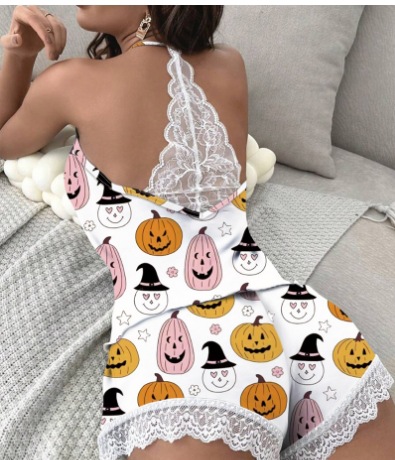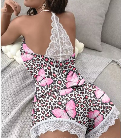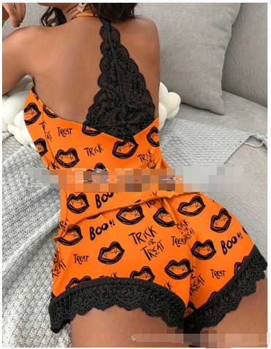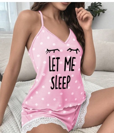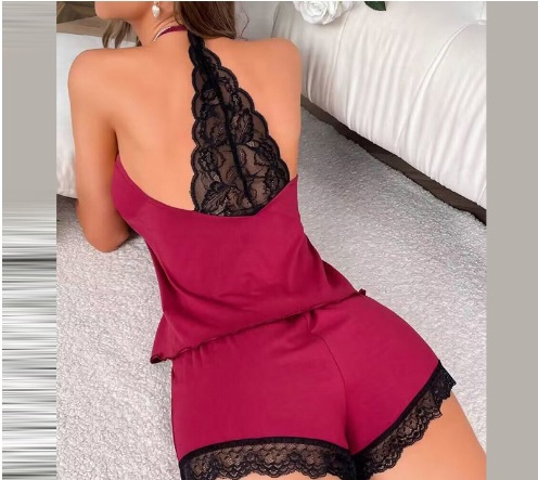 유럽과 미국의 2024 여성의 새로운 패션 섹시한 슬링 V 넥 레이스 반바지 파자마 홈 의류 투피스 세트스토어 가기