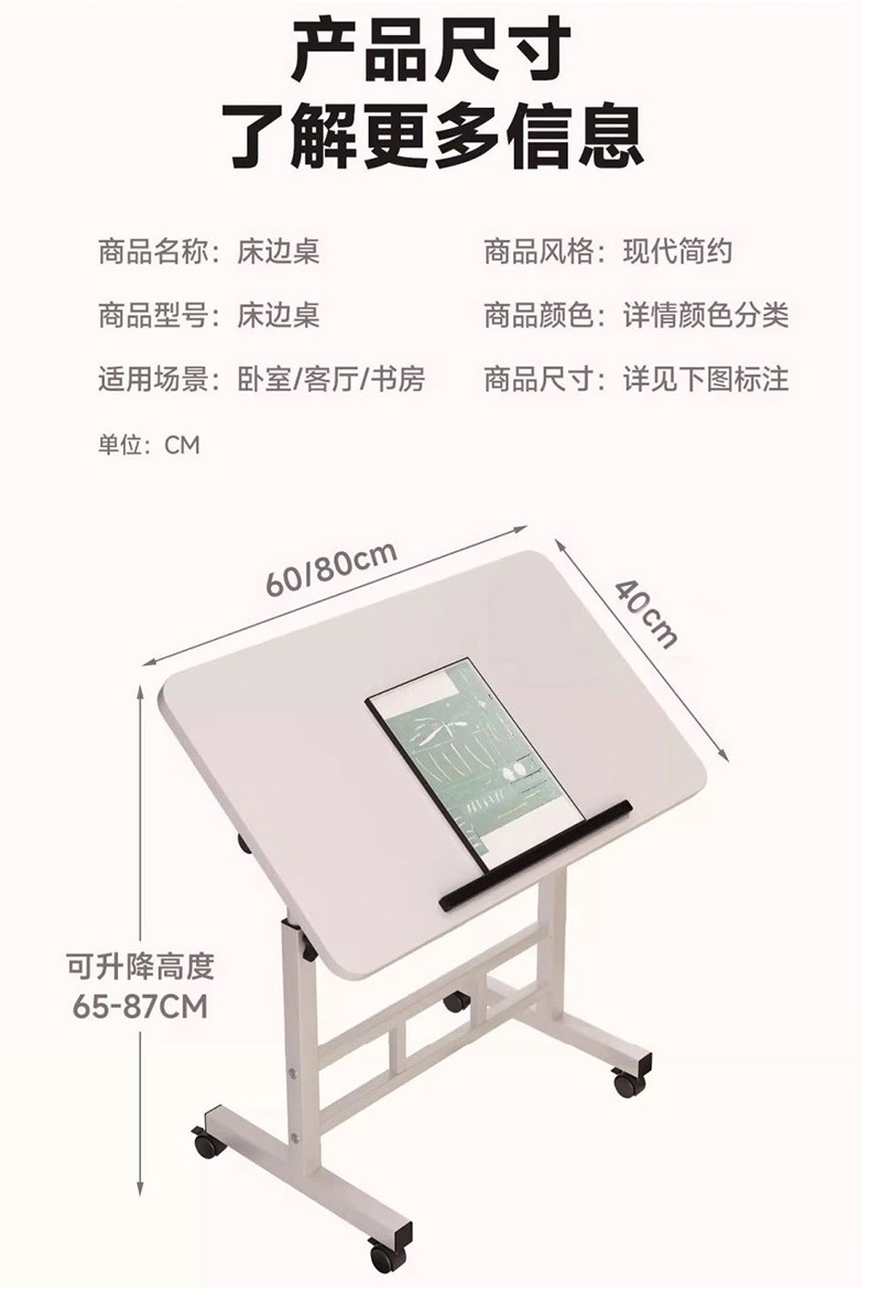 다기능 리프팅 테이블 가역 가능한 바퀴 움직일 수있는 컴퓨터 테이블 침대 옆 테이블 대외 무역 작은 테이블 접이식 게으른 테이블