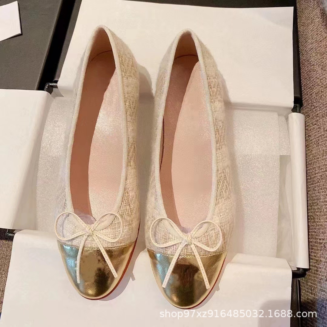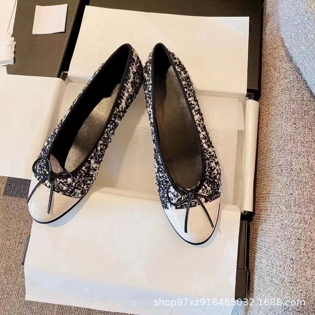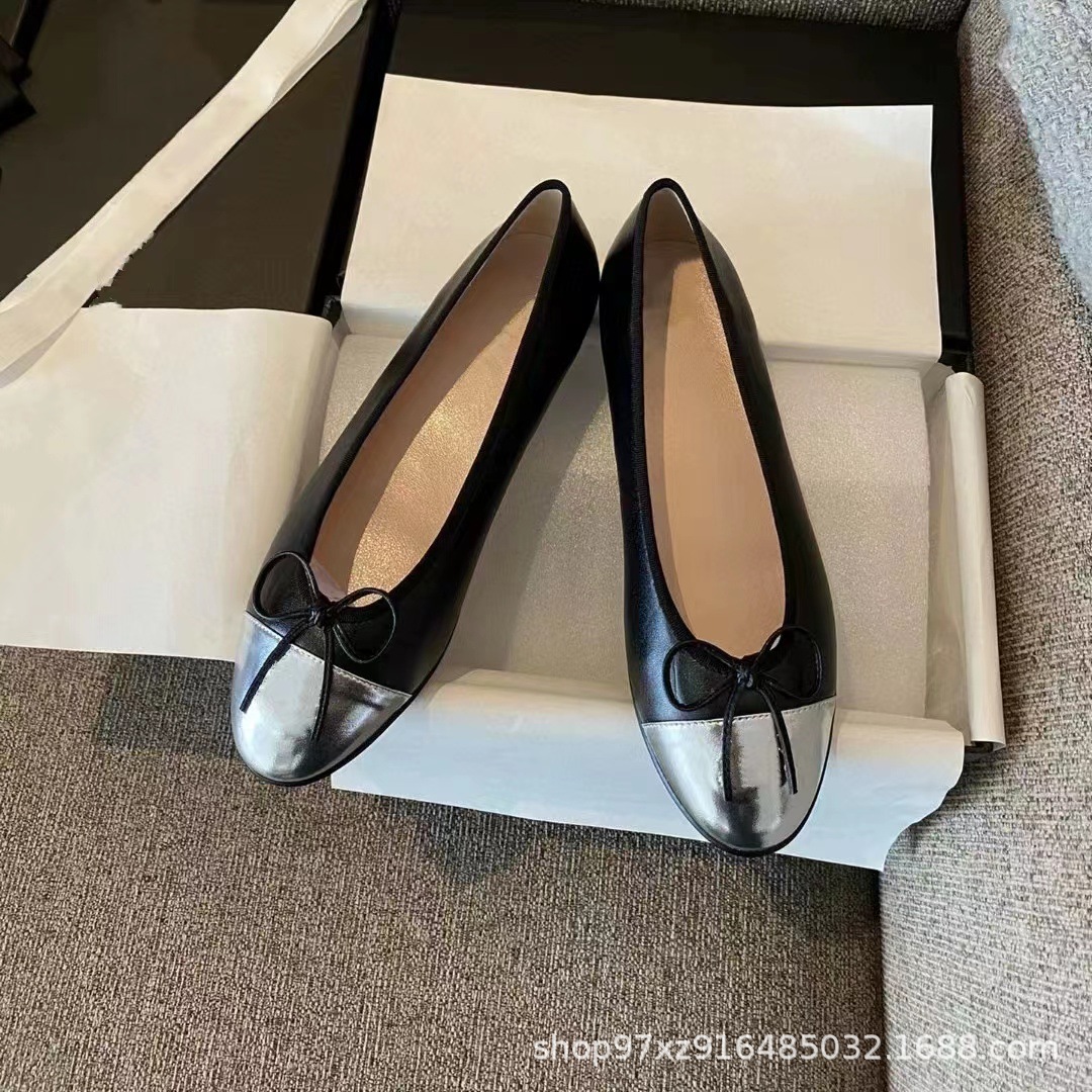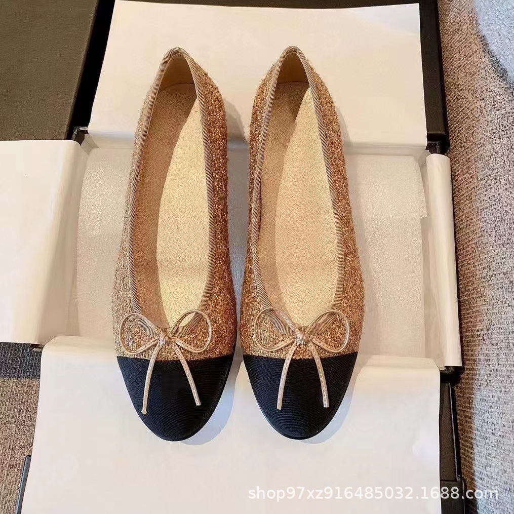 향기로운 스타일 플랫 싱글 레이어 신발 여성용 활 2024 새로운 플랫 힐 컬러 블록 발레 신발 라운드 토 얕은 입 게으른 신발