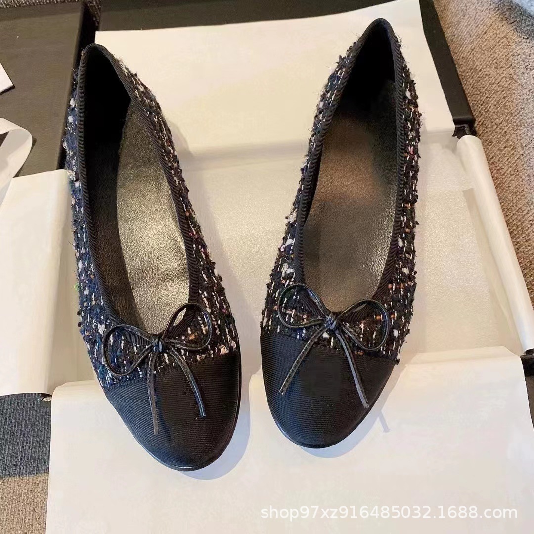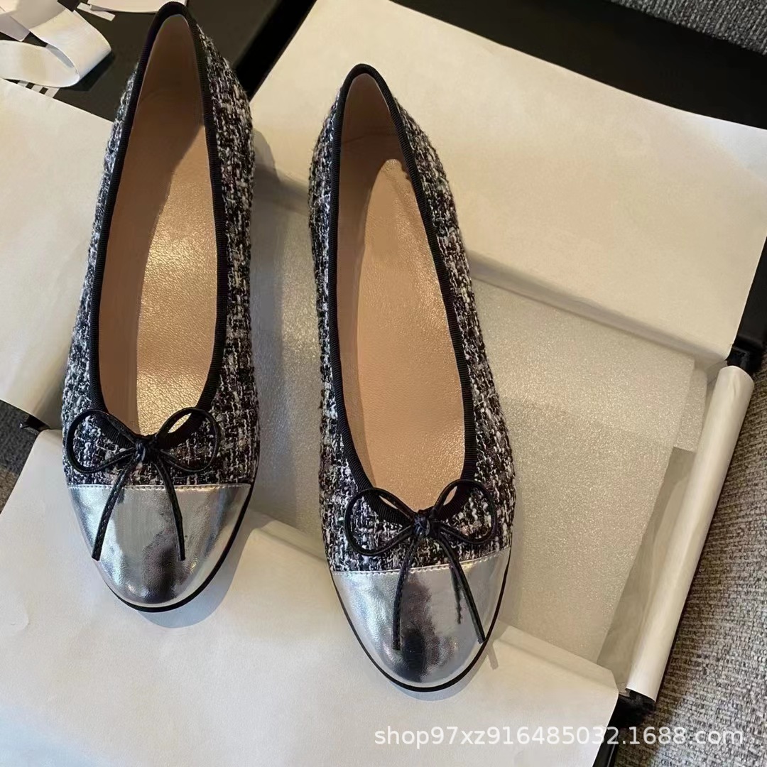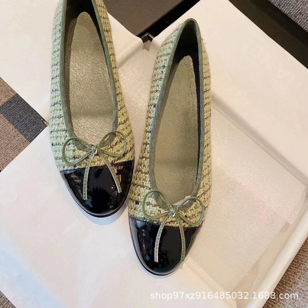 향기로운 스타일 플랫 싱글 레이어 신발 여성용 활 2024 새로운 플랫 힐 컬러 블록 발레 신발 라운드 토 얕은 입 게으른 신발