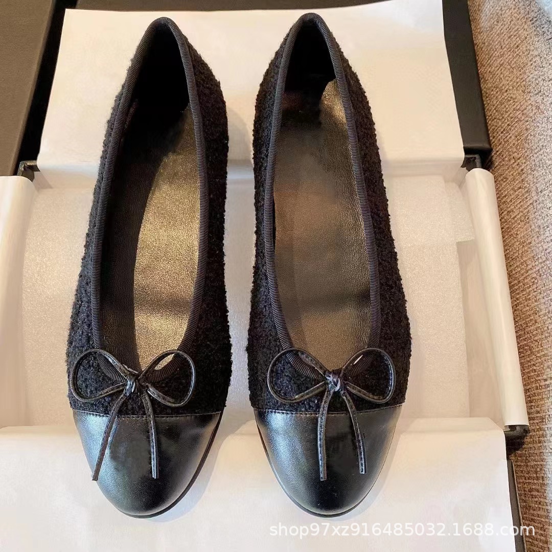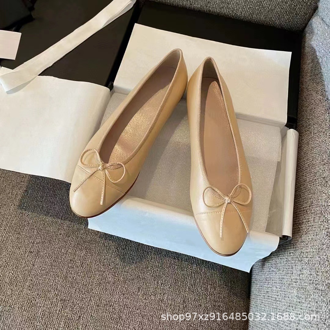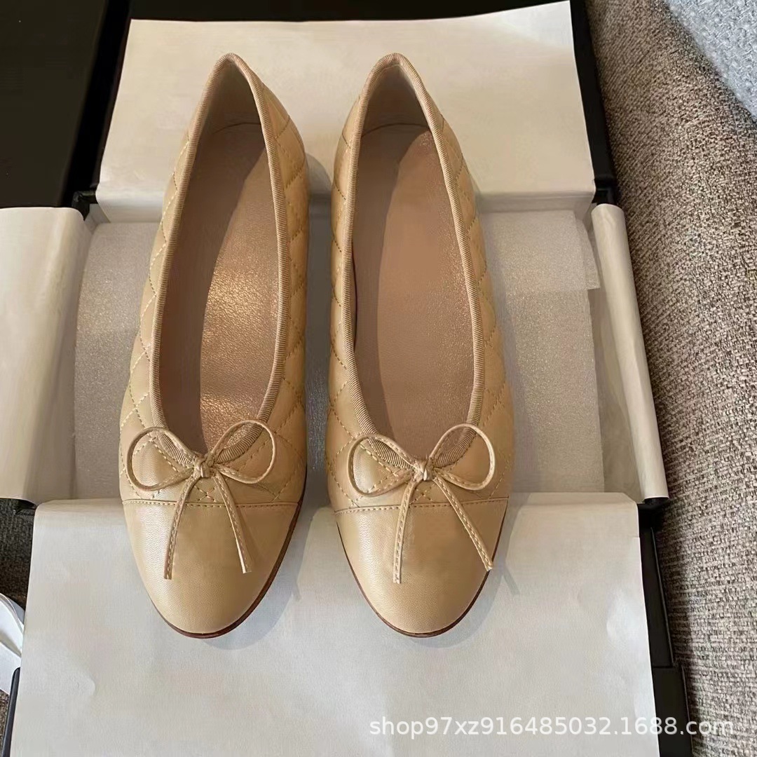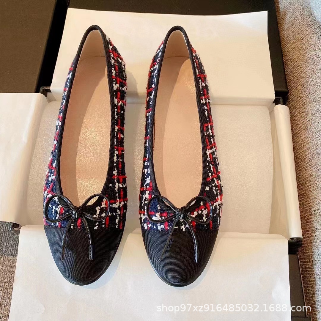 향기로운 스타일 플랫 싱글 레이어 신발 여성용 활 2024 새로운 플랫 힐 컬러 블록 발레 신발 라운드 토 얕은 입 게으른 신발