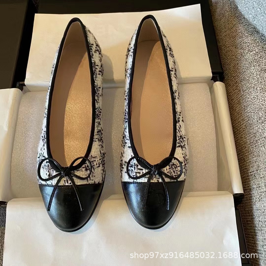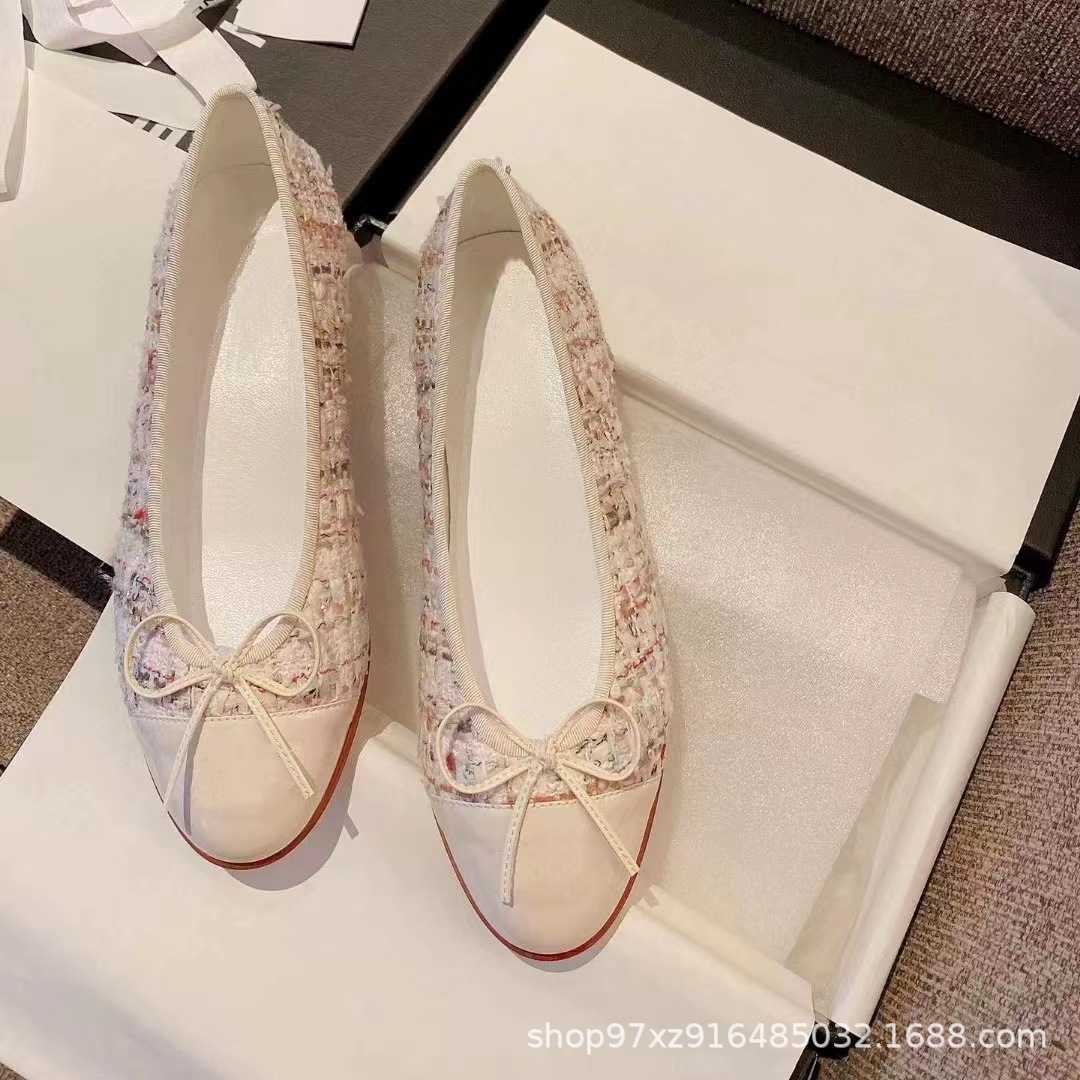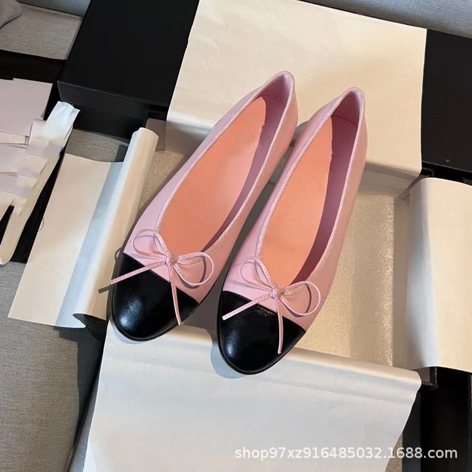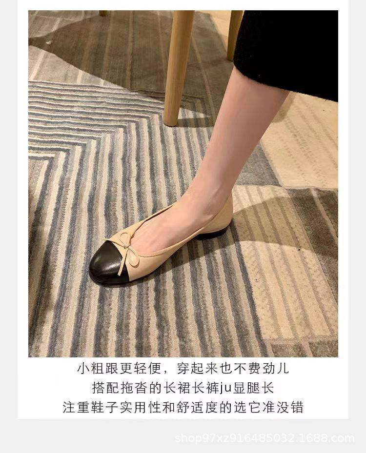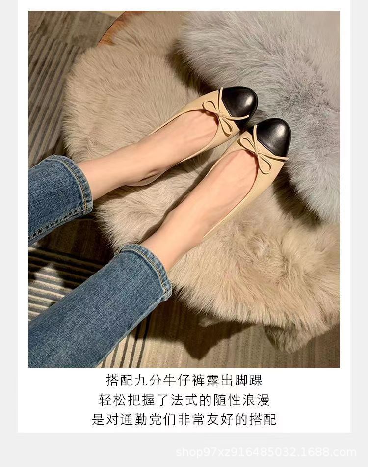 향기로운 스타일 플랫 싱글 레이어 신발 여성용 활 2024 새로운 플랫 힐 컬러 블록 발레 신발 라운드 토 얕은 입 게으른 신발스토어 가기