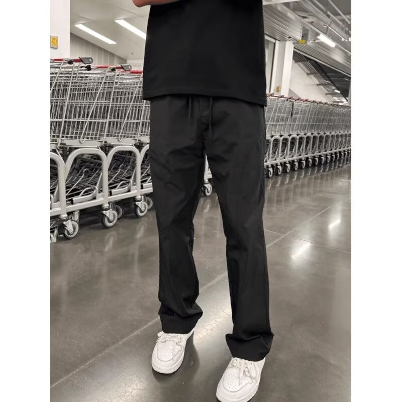 트렌디 한 착용 미국식 기본 경사 컷 올 매치 캐주얼 바지 남자 슬리밍 느슨한 스트레이트 툴링 마이크로 블레 바지 가을스토어 가기