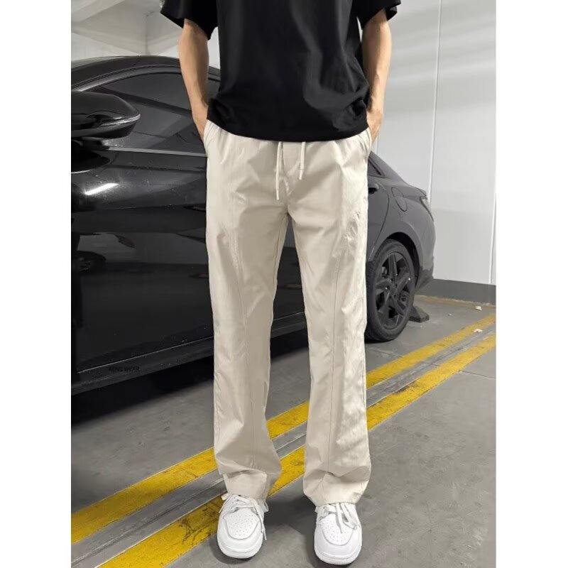 트렌디 한 착용 미국식 기본 경사 컷 올 매치 캐주얼 바지 남자 슬리밍 느슨한 스트레이트 툴링 마이크로 블레 바지 가을