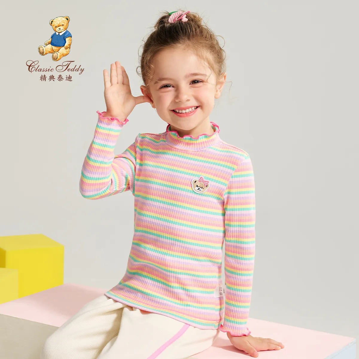클래식 테디 걸스 티셔츠 아동베이스 셔츠 아동복 봄 긴 소매 탑 새로운 패션 올 매치 트렌디