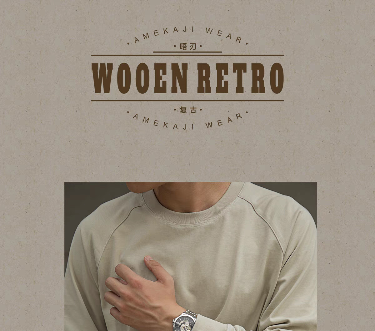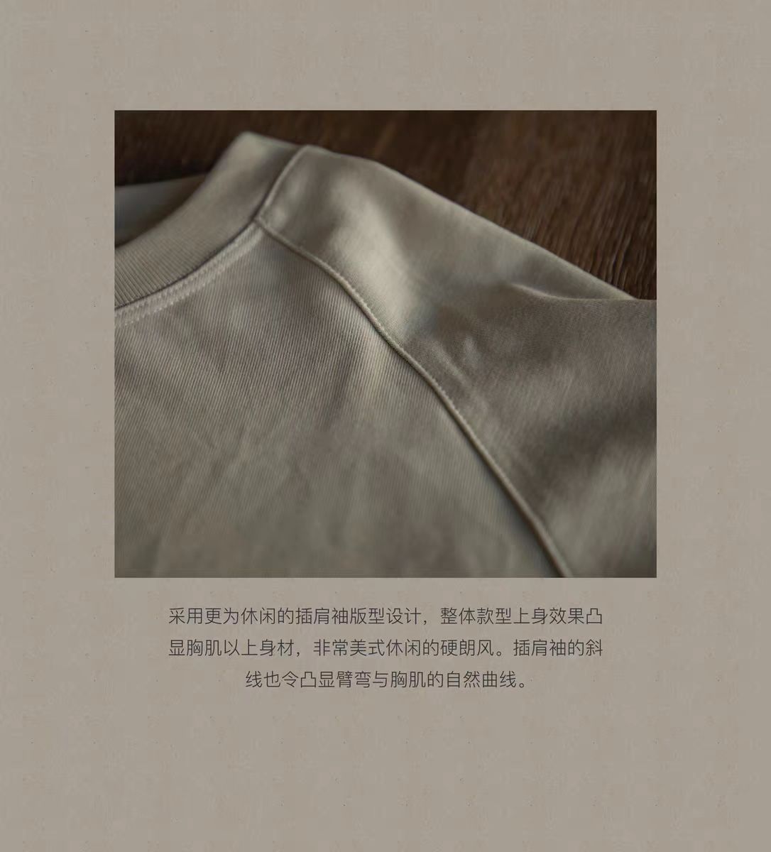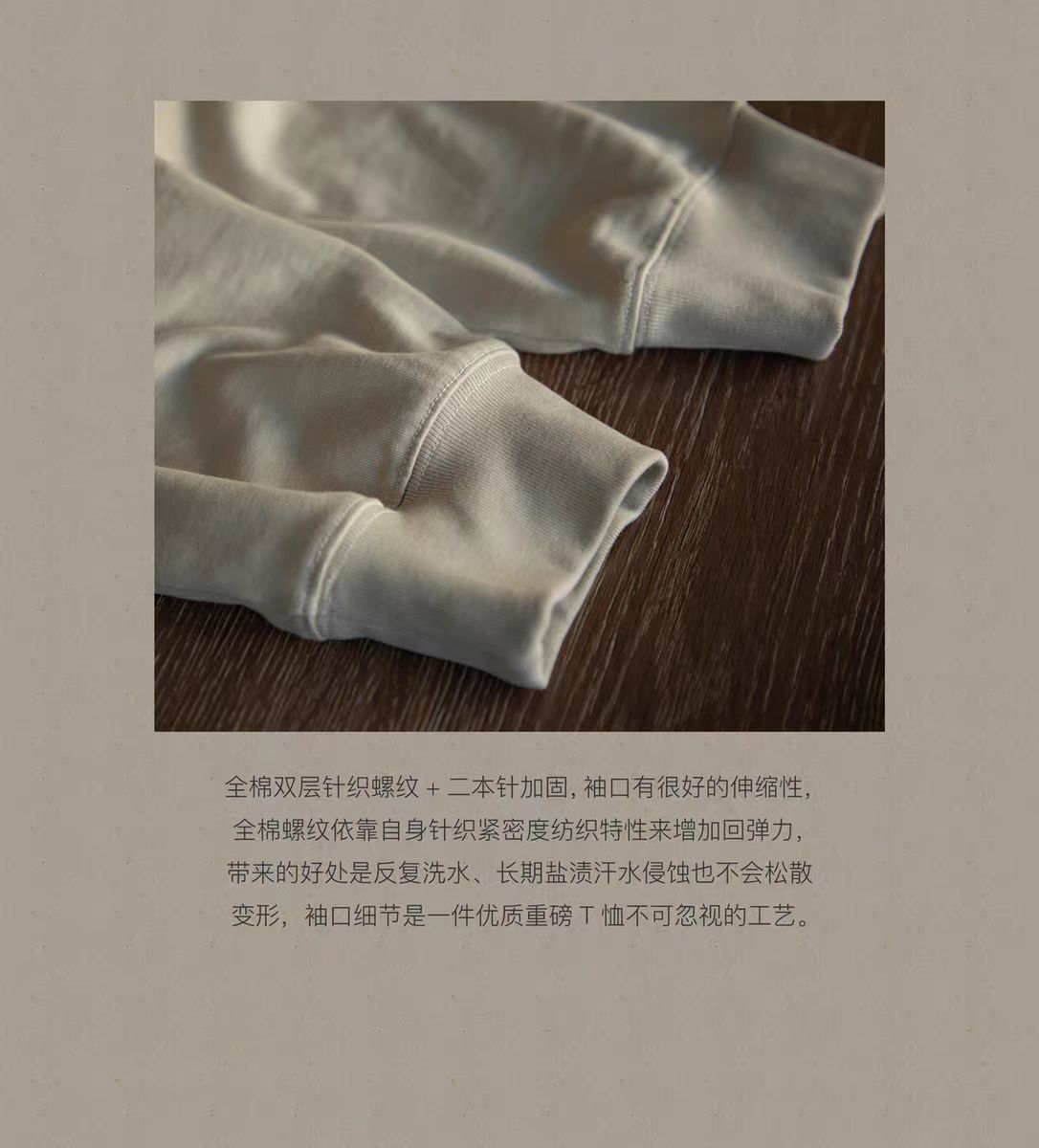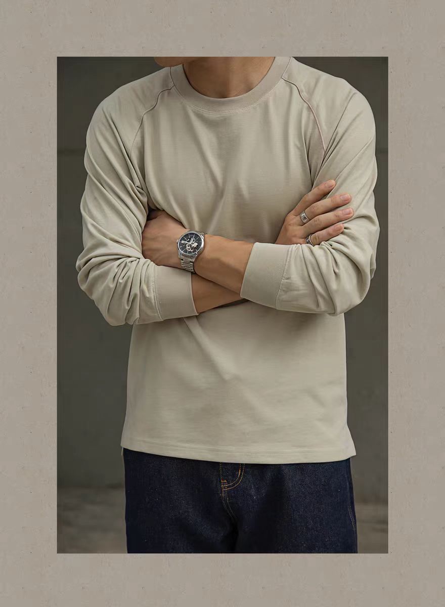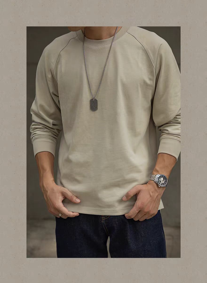 미국 복고풍 헤비급 350g 면 라글란 긴팔 티셔츠 Ami Khaji 작은 목선 기본 셔츠 가을 남성