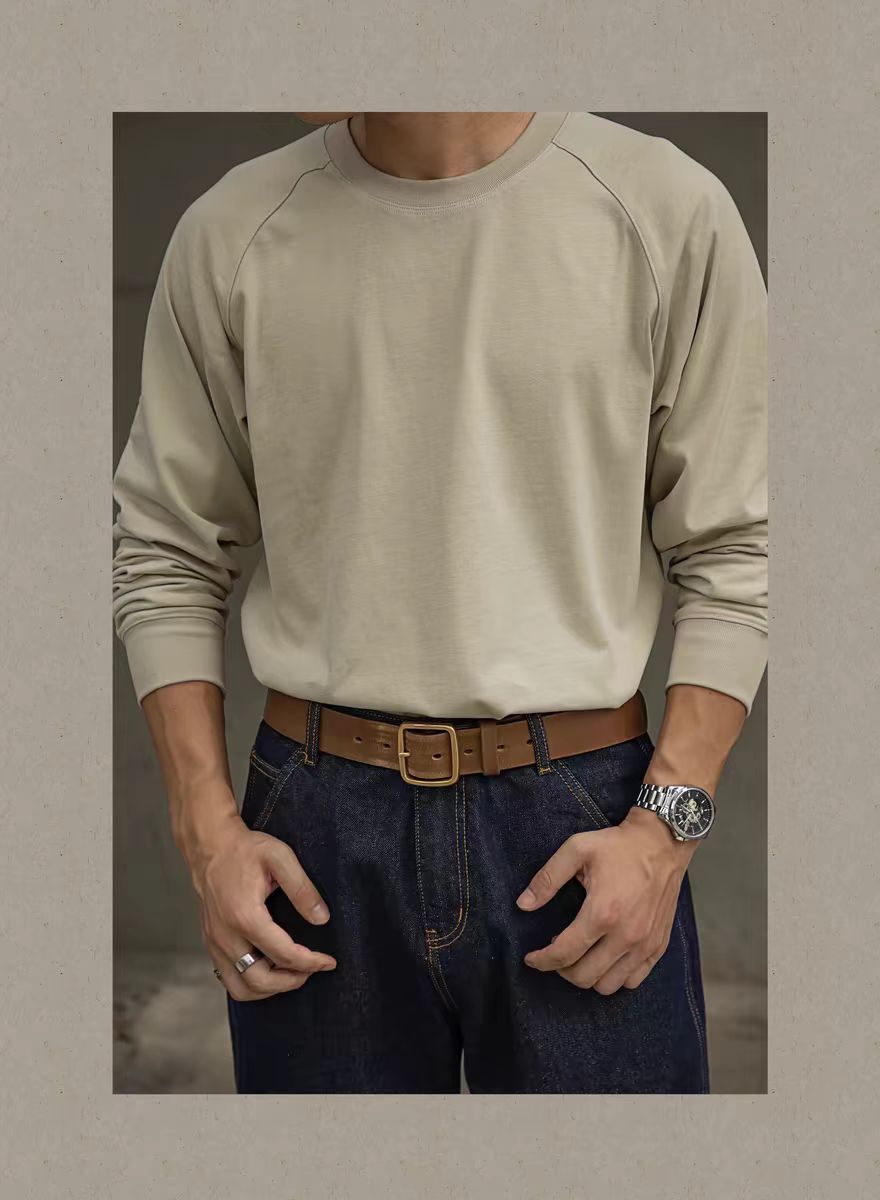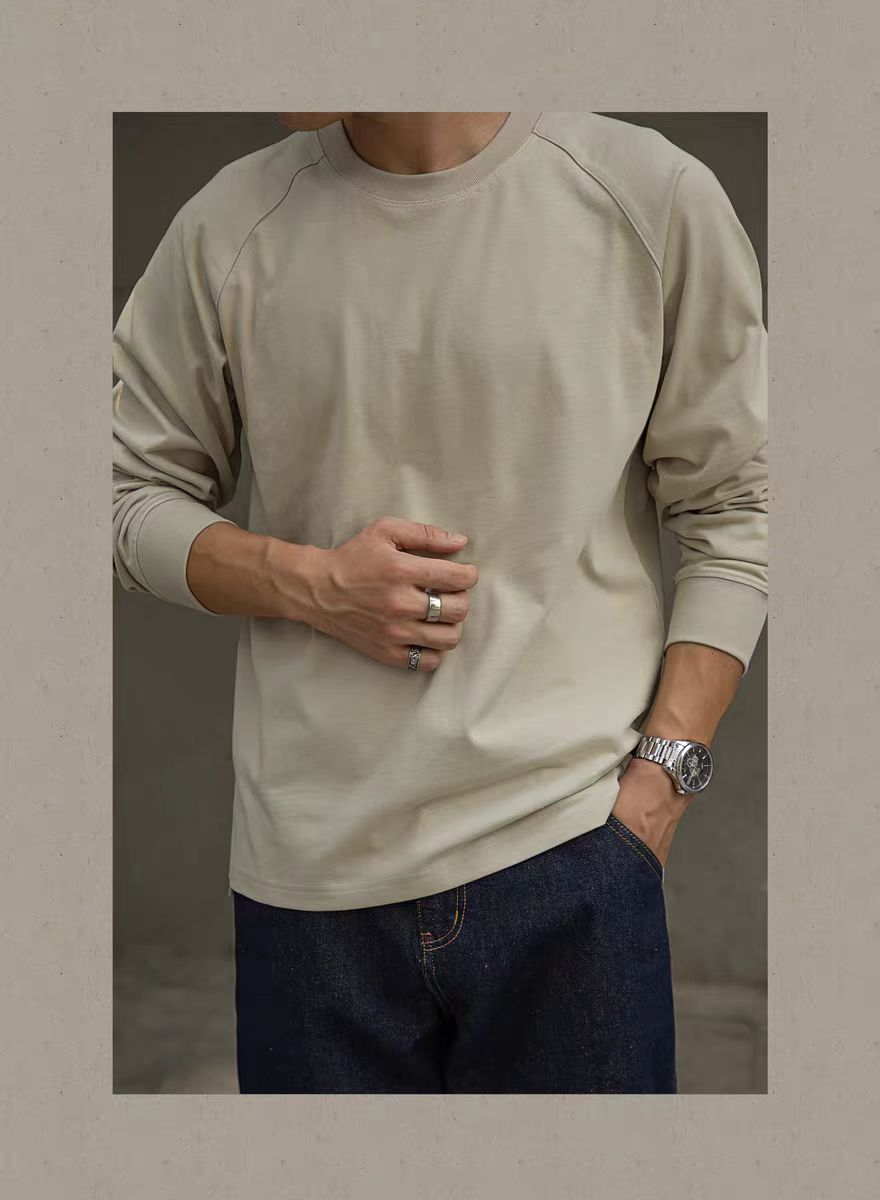미국 복고풍 헤비급 350g 면 라글란 긴팔 티셔츠 Ami Khaji 작은 목선 기본 셔츠 가을 남성스토어 가기