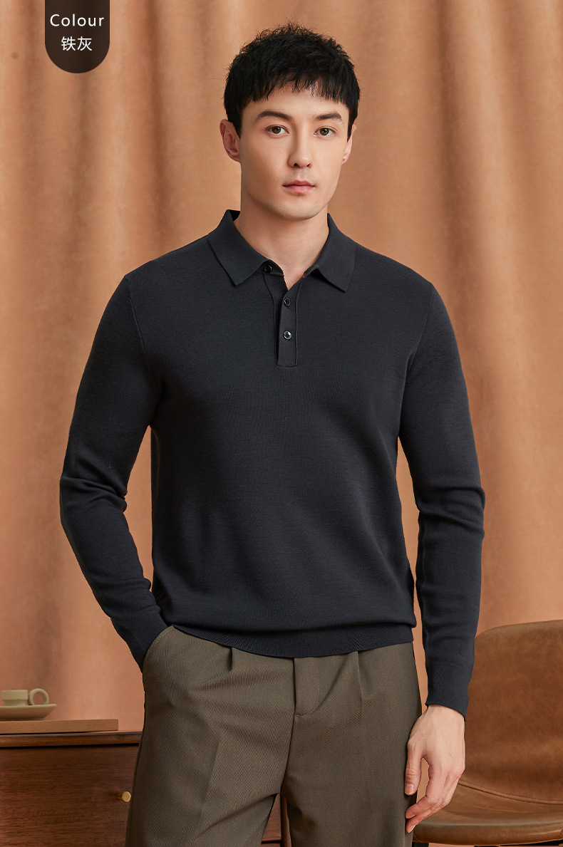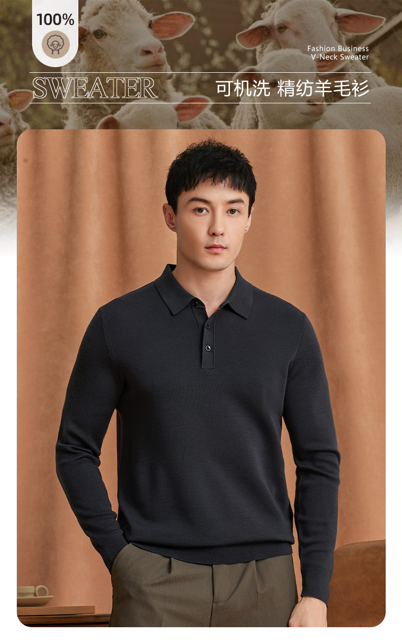 [80 최악] 모직 스웨터 남성용 옷깃 솔리드 컬러 머신 두꺼운 중견 비즈니스 티셔츠 칼라 스웨터스토어 가기