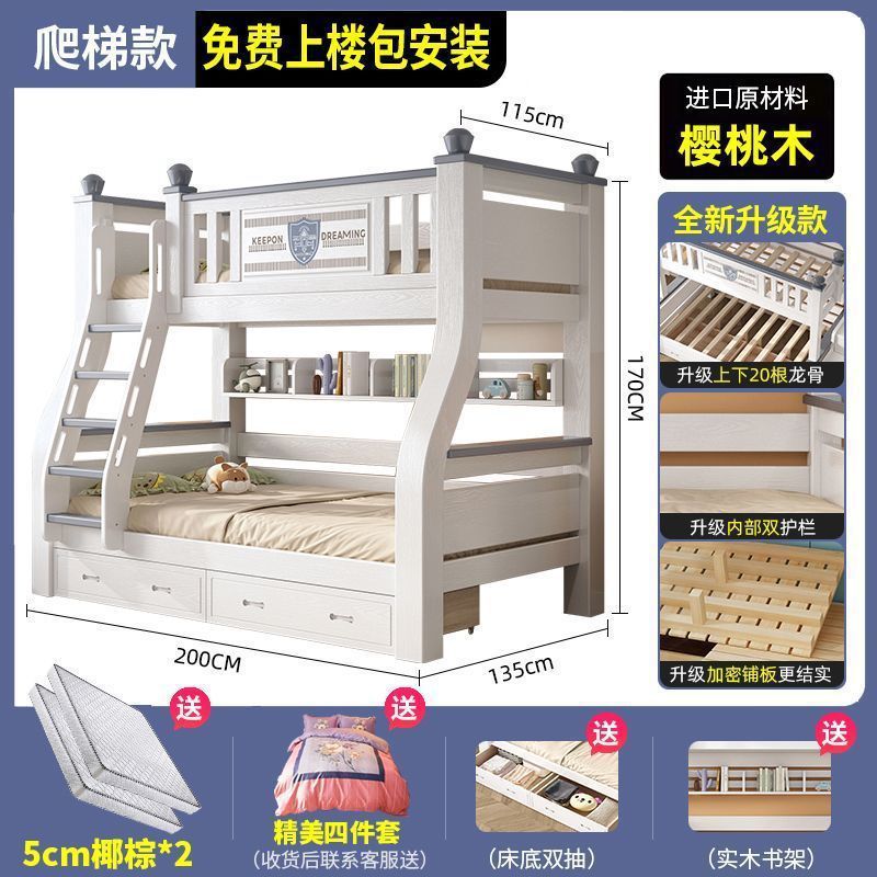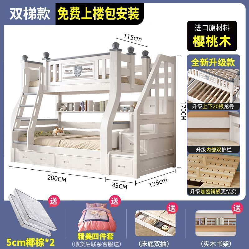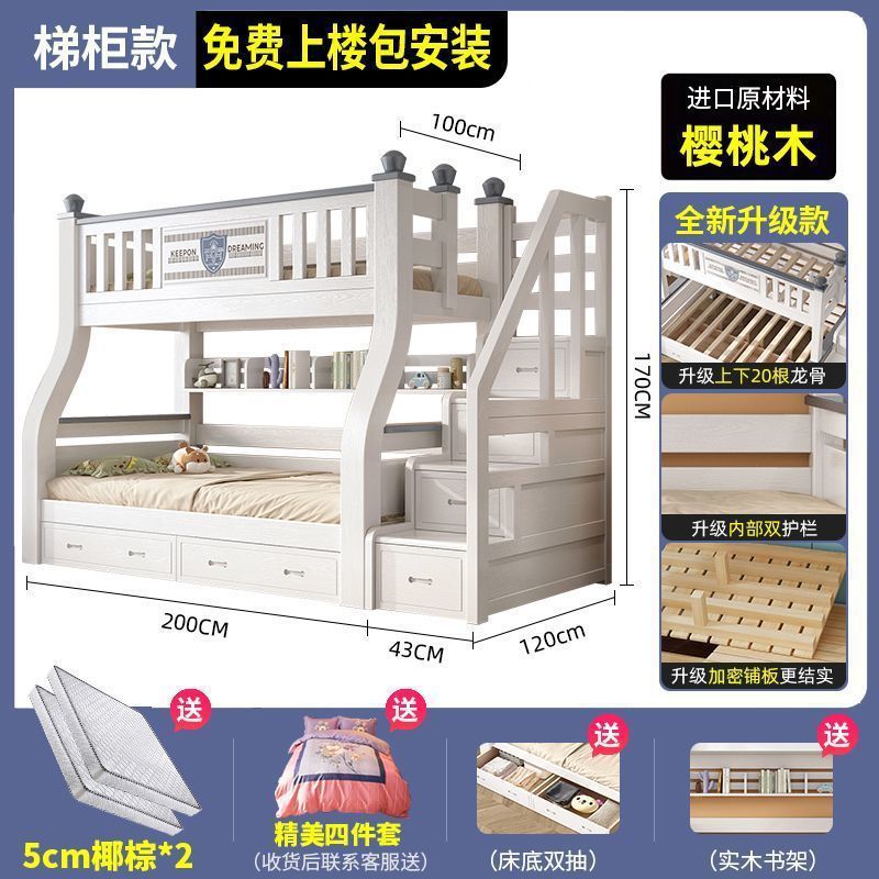 체리 우드 어린이 침대 이층 침대 이층 침대 2 층 침대 단단한 나무 성인 엄마와 아이가 두껍고 높고 낮은 어린이 침대