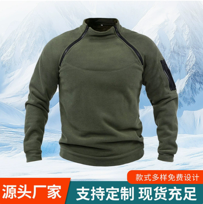 두꺼운 280g 폴라 플리스 국경 재고 유럽과 미국 칼라 남성용 느슨한 단색 야외 따뜻한 전술 남성용 스웨터스토어 가기