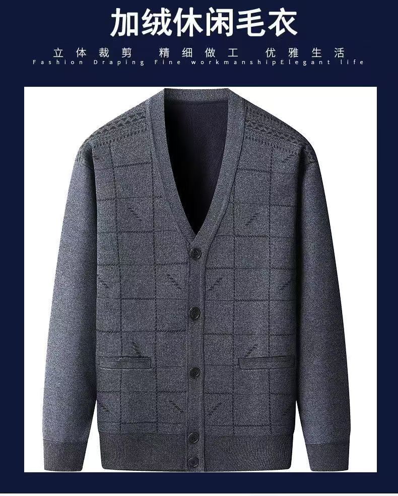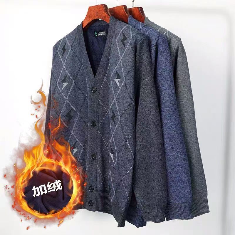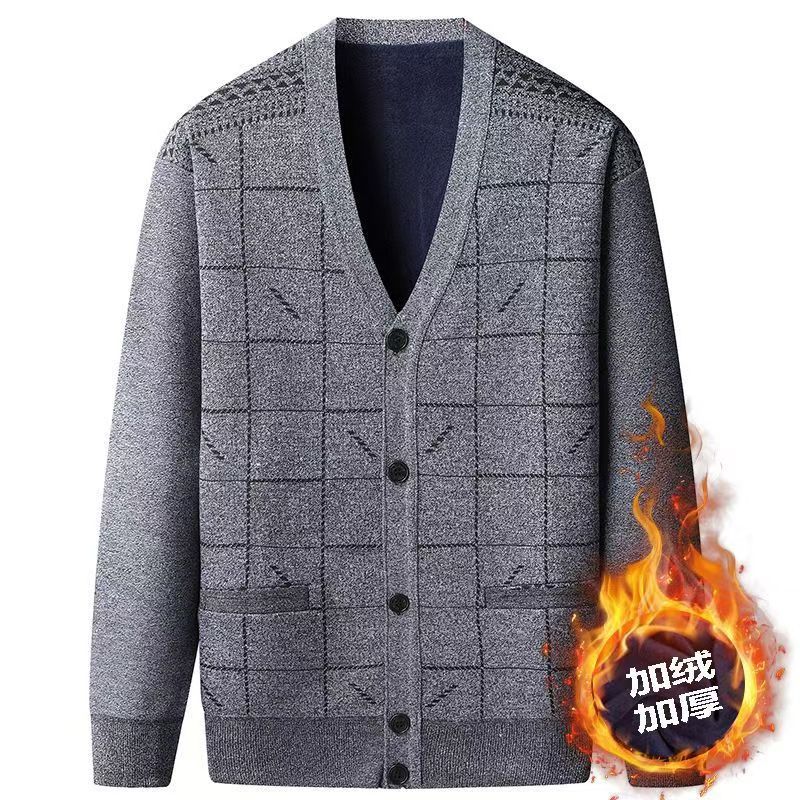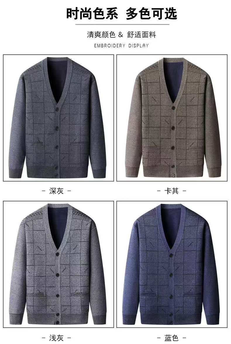 중년 및 노인 남성 아버지의 옷 기모 두꺼운 스웨터 가을과 겨울 스웨터 카디건 남성용 따뜻한 코트 아버지의 옷스토어 가기