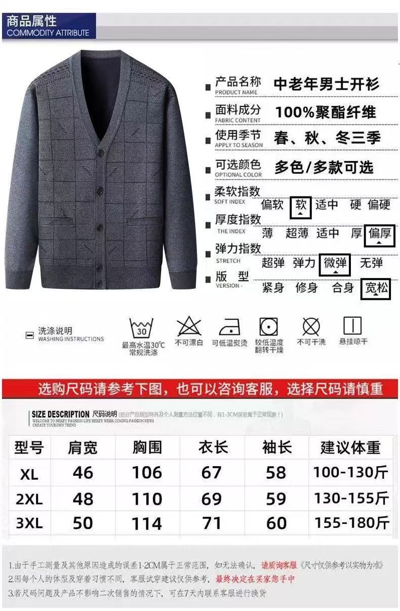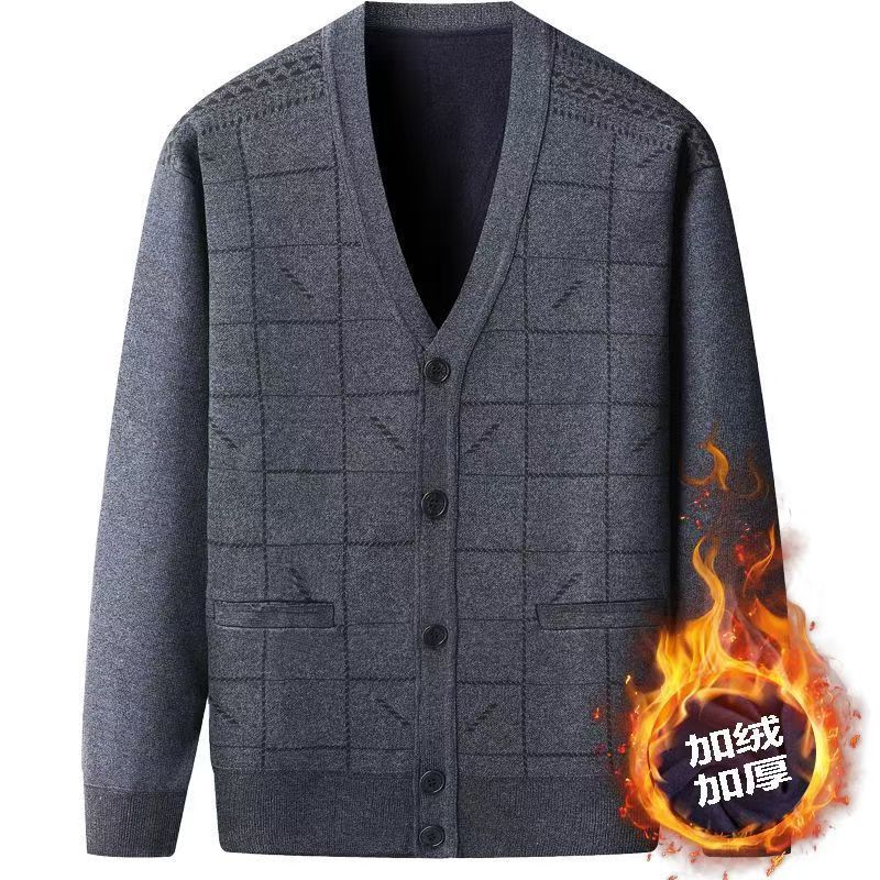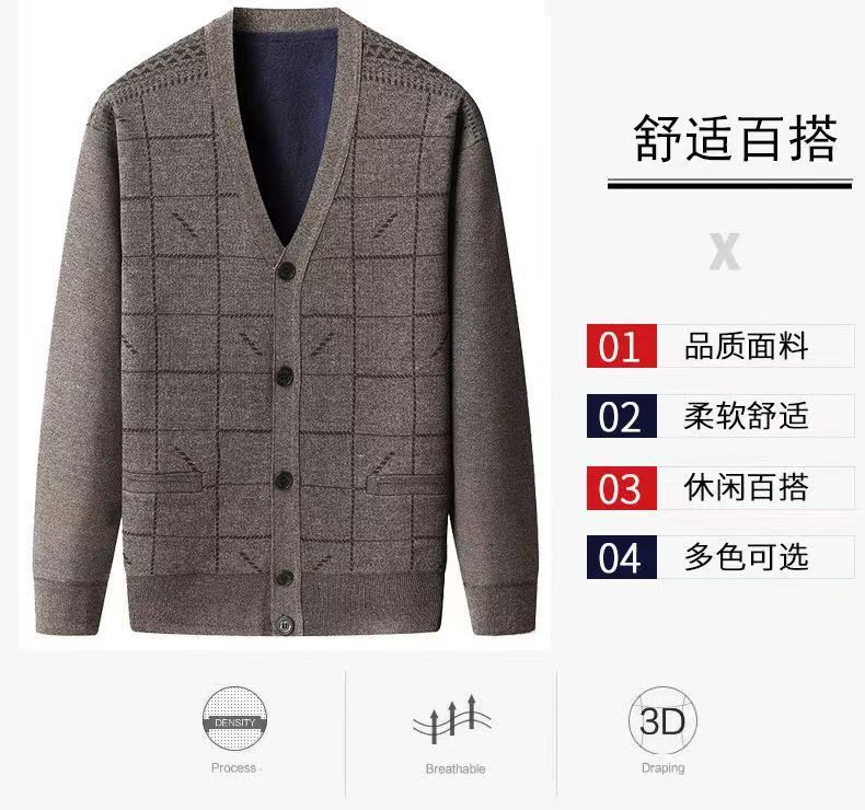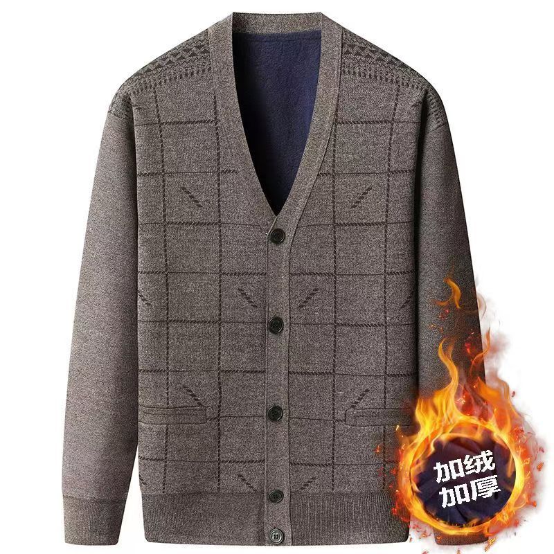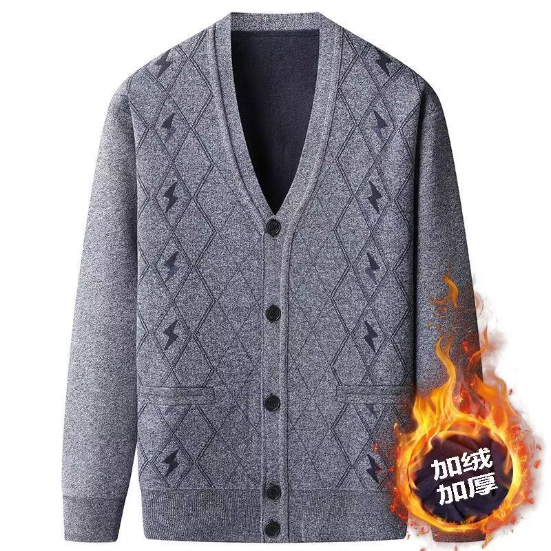 중년 및 노인 남성 아버지의 옷 기모 두꺼운 스웨터 가을과 겨울 스웨터 카디건 남성용 따뜻한 코트 아버지의 옷스토어 가기