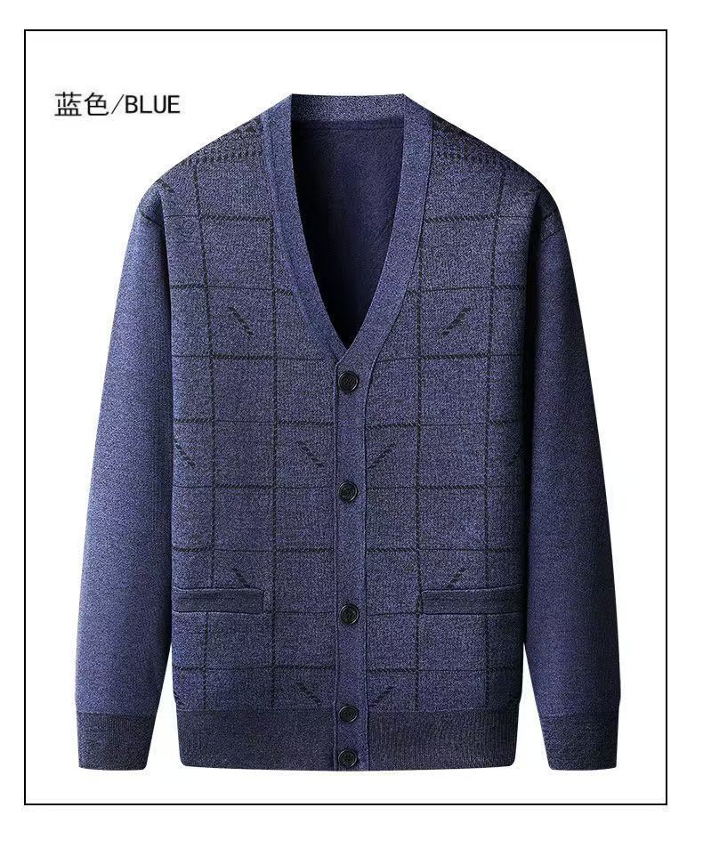 중년 및 노인 남성 아버지의 옷 기모 두꺼운 스웨터 가을과 겨울 스웨터 카디건 남성용 따뜻한 코트 아버지의 옷