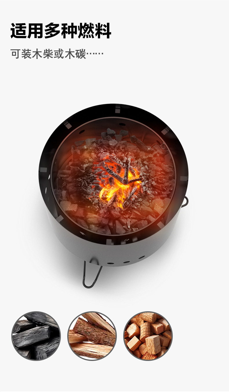 크로스보더 캠핑용 마당 난방용 화로, 정원용 나무 접이식 화로, 화덕, 바베큐 숯불 그릴, 마당 바베큐