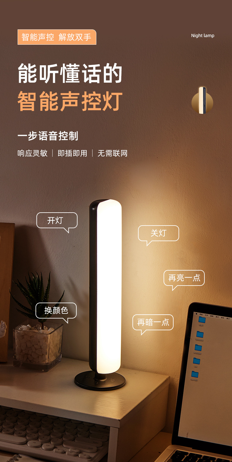인공 지능 음성 제어 램프 새로운 침실 홈 야간 음성 제어 수면 침대 기숙사 독서 책상 램프