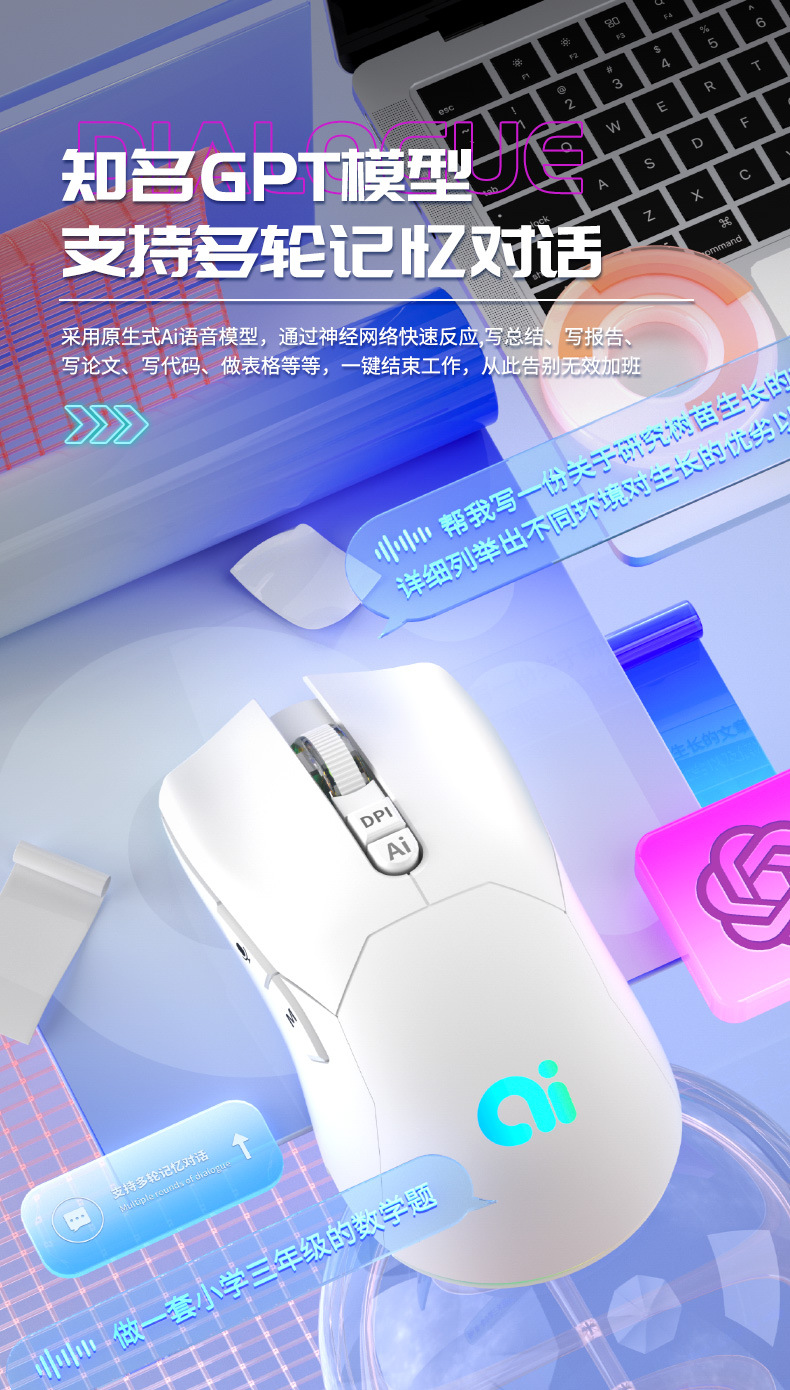 • AI 스마트 마우스/화이트 [AI Q&A/글쓰기/PPT/그림/실시간 번역]