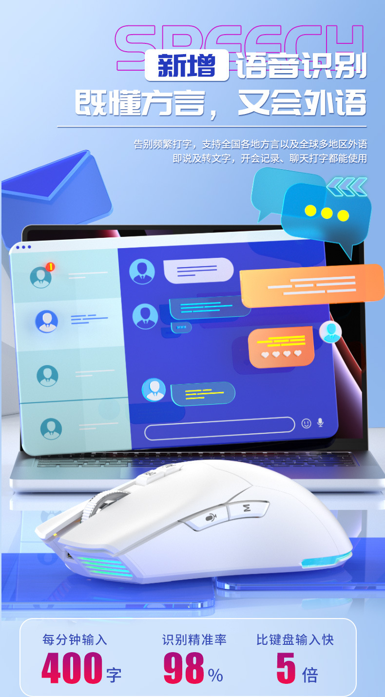 딥시크 인기 AI 스마트 음성 마우스 블루투스 충전식 음성인식 타이핑 번역 글쓰기 PPT