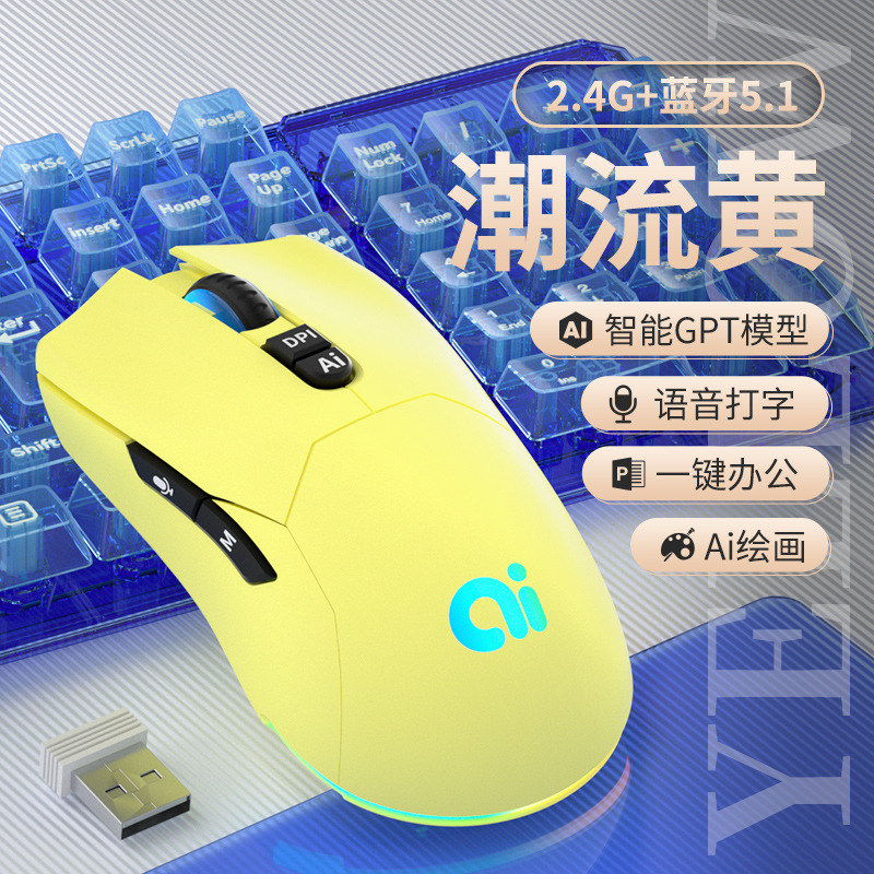 • AI 스마트 마우스/노란색 [AI Q&A/글쓰기/PPT/그림/실시간 번역]