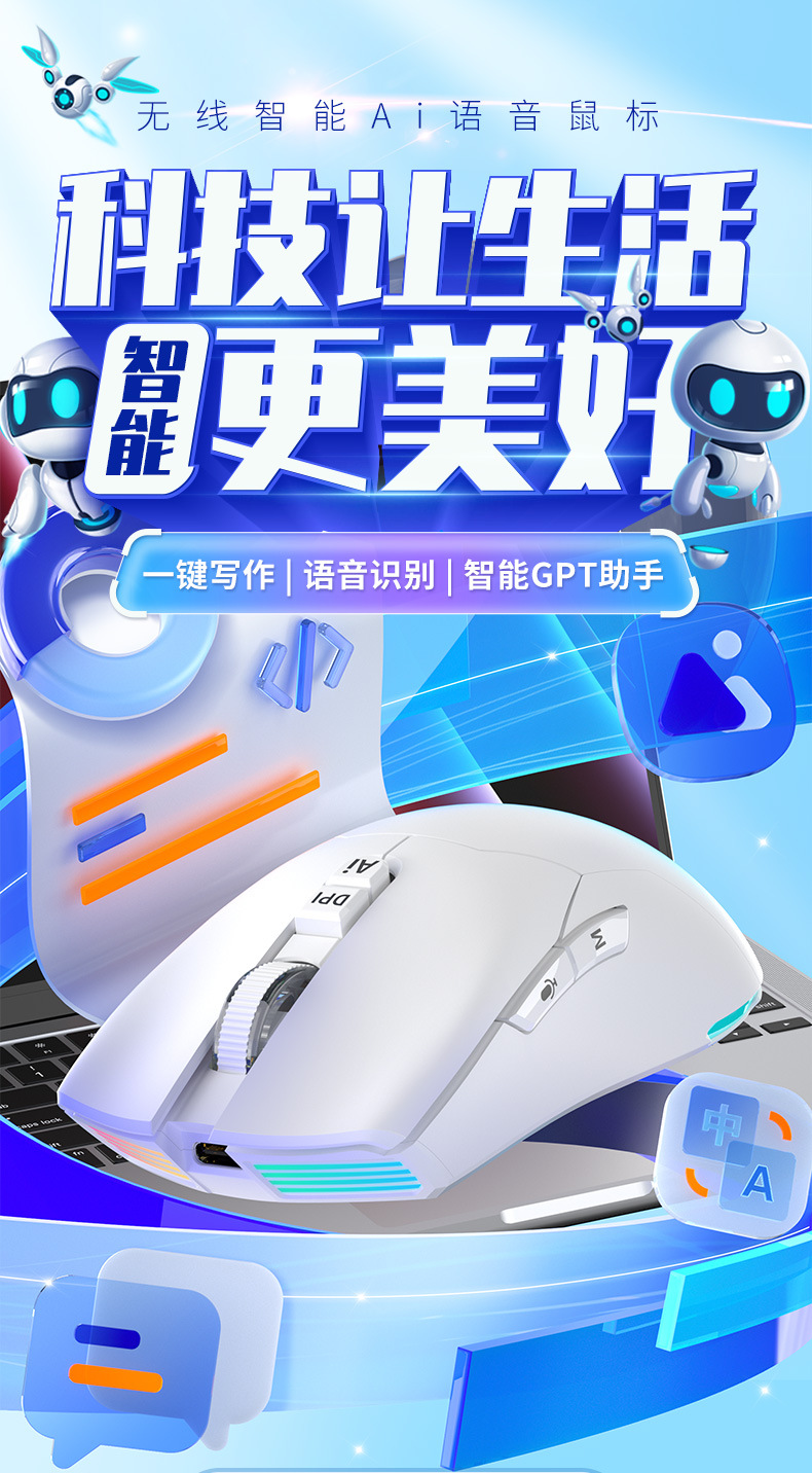 딥시크 인기 AI 스마트 음성 마우스 블루투스 충전식 음성인식 타이핑 번역 글쓰기 PPT스토어 가기