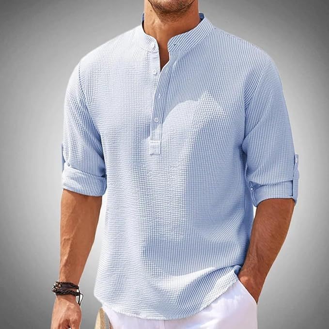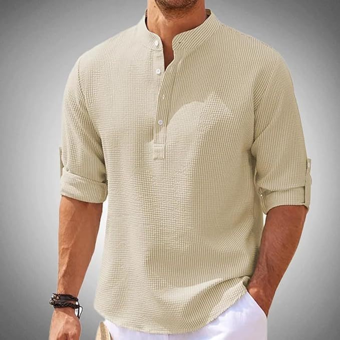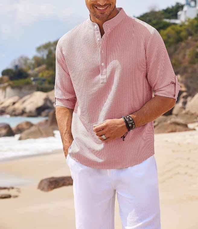 스팟 2025 유럽과 미국 남성 셔츠 긴팔 스탠드 칼라 오픈 버튼 파인애플 반팔 격자 무늬 남성 캐주얼 탑스토어 가기