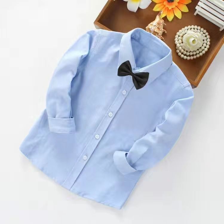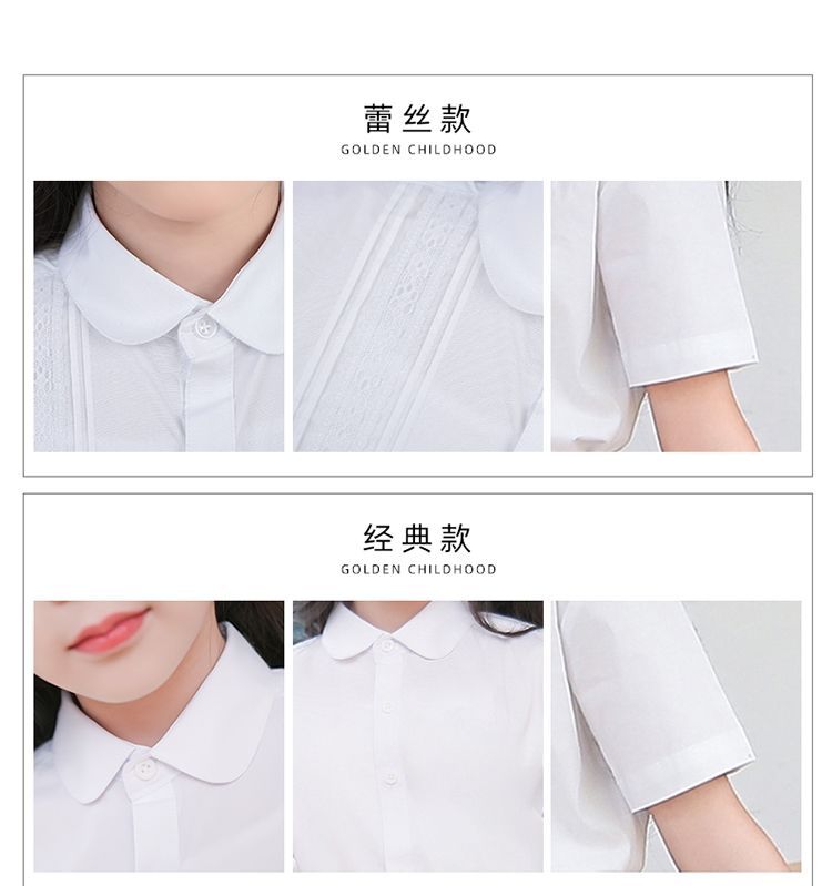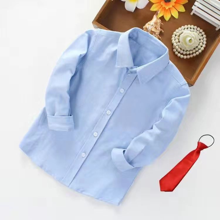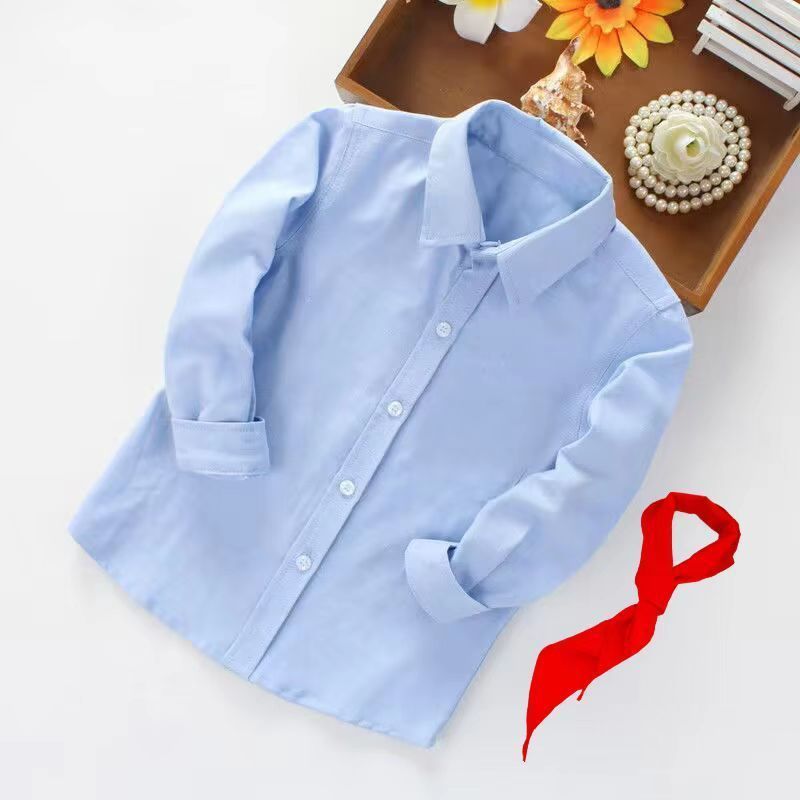 어린이 흰 셔츠 소년 셔츠 여아 흰 셔츠 면 봄과 여름 긴 소매 학교 중학교 및 초등학생을위한 교복