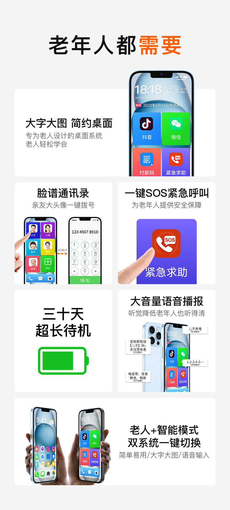 심천 휴대 전화 공장 새로운 정품 직접 판매 노인 기계 스마트 폰 특별 예비 기계 큰 볼륨