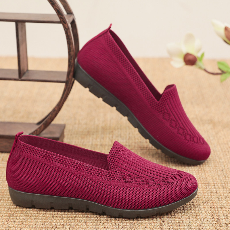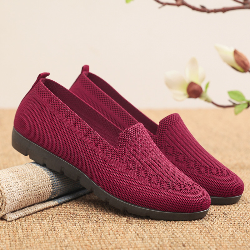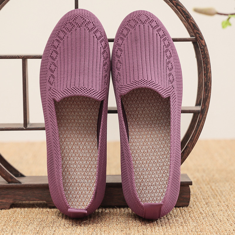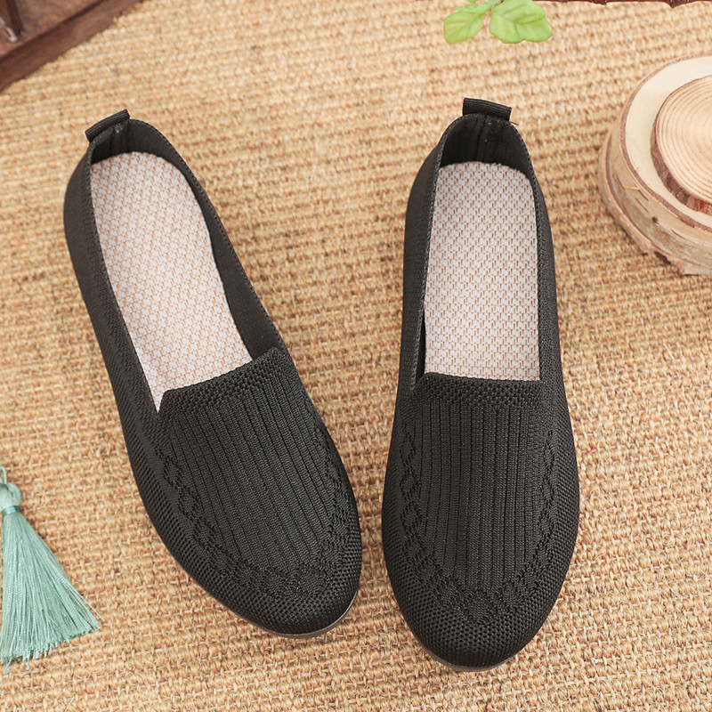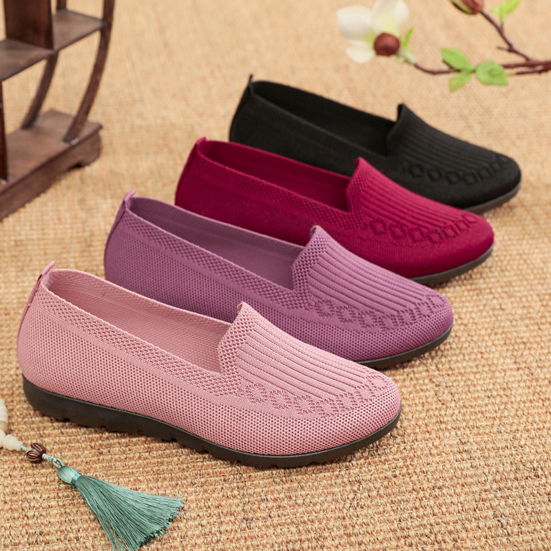 봄여름 신발, 옛 북경 천신발, 여성용 통기성 플라이니트 메쉬 신발, 플랫솔 중노년 여성화, 얕은 굽 싱글 슈즈스토어 가기
