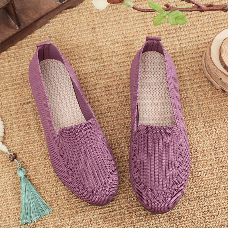 봄여름 신발, 옛 북경 천신발, 여성용 통기성 플라이니트 메쉬 신발, 플랫솔 중노년 여성화, 얕은 굽 싱글 슈즈
