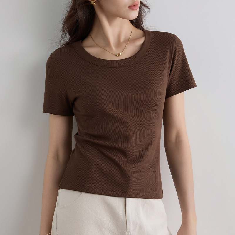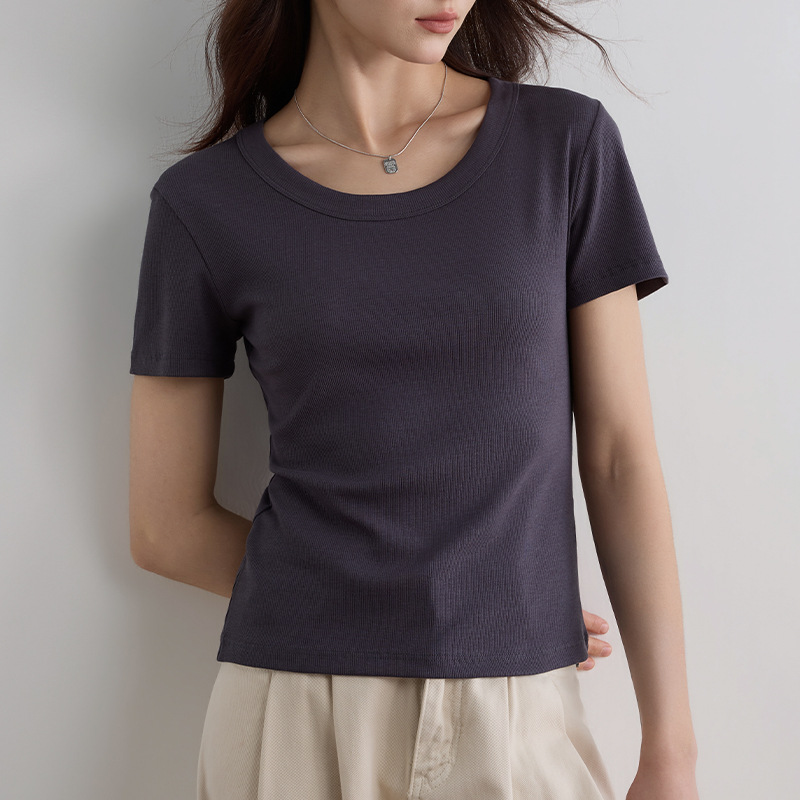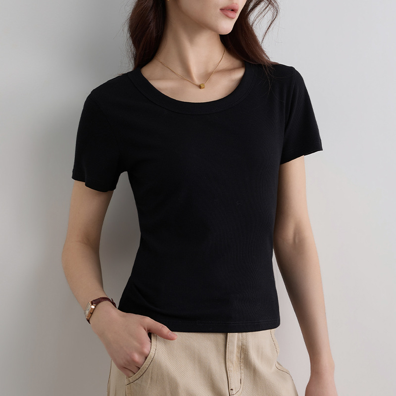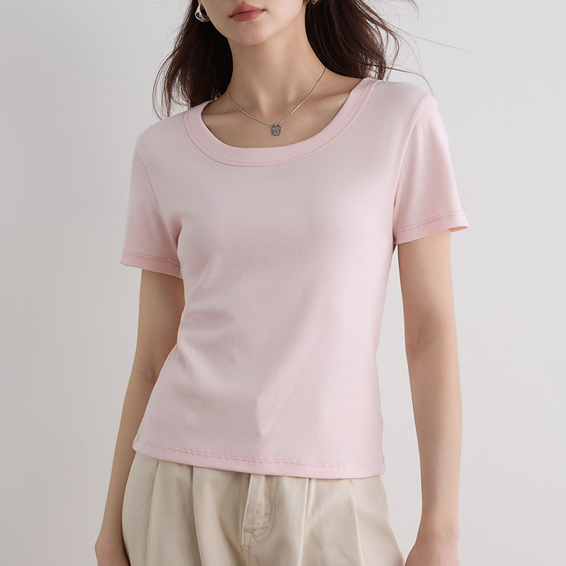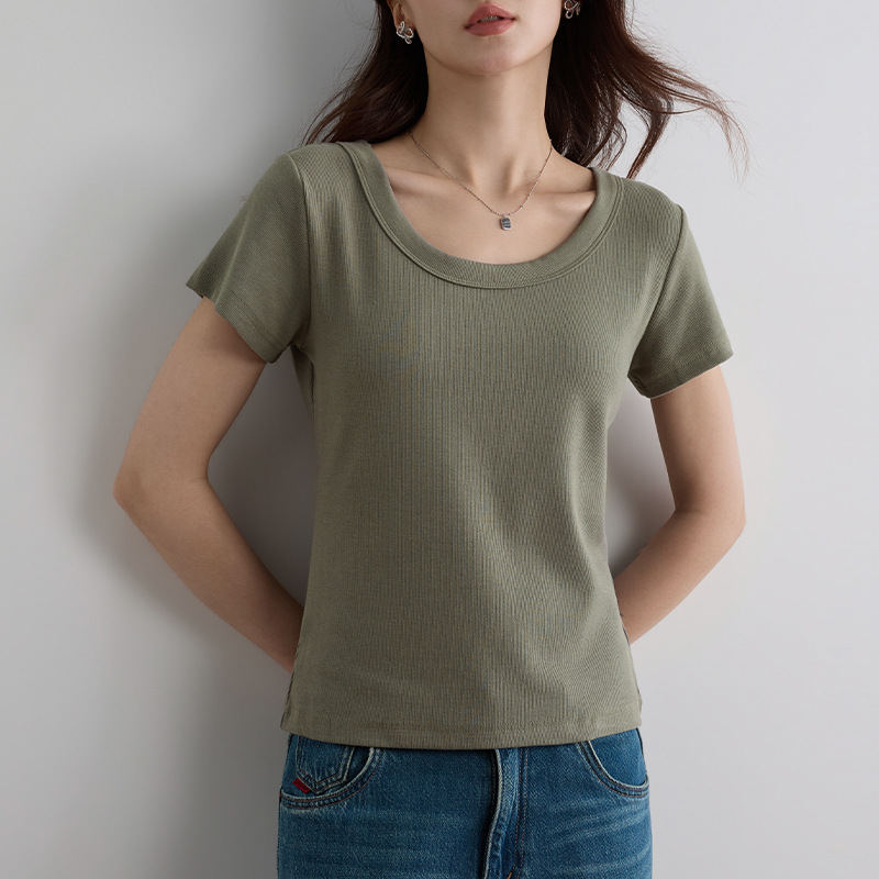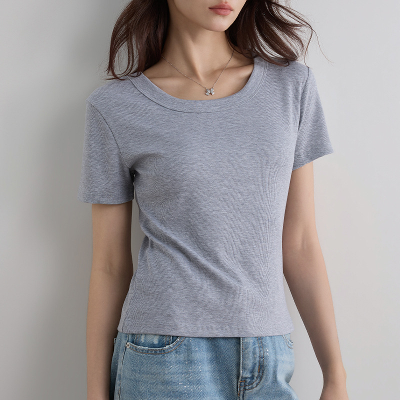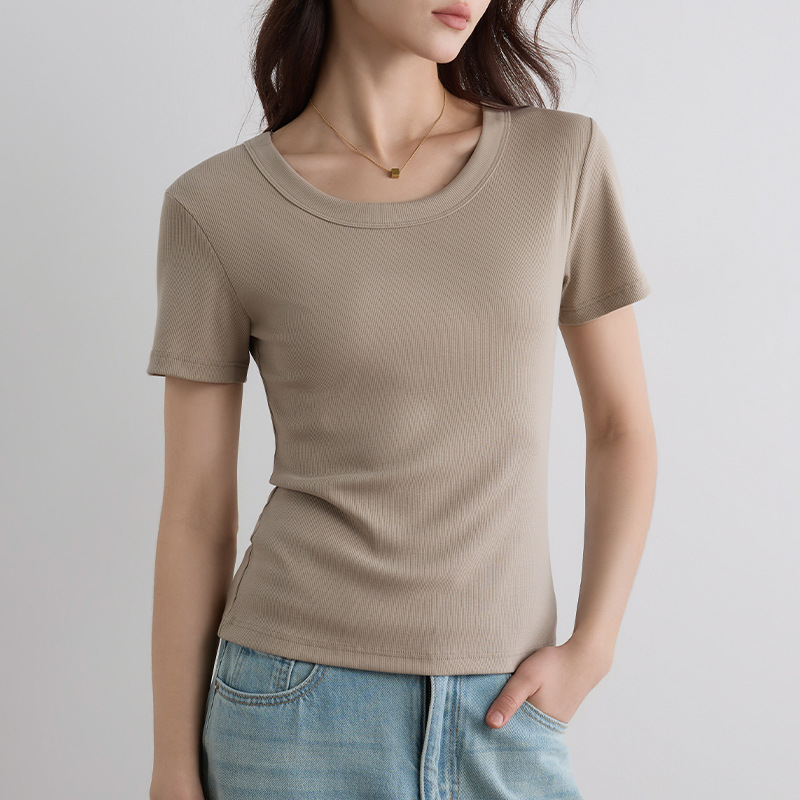여성용 여름 2026 신상 슬림핏 다용도 슬리밍 빅사이즈 U넥 고탄성 반팔 티셔츠스토어 가기