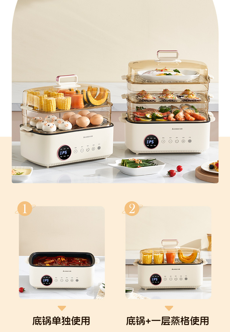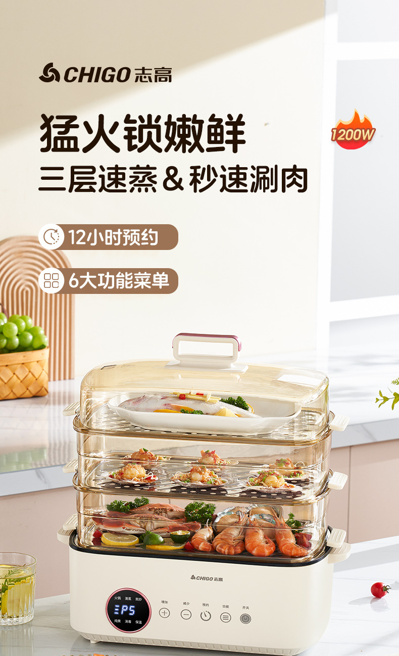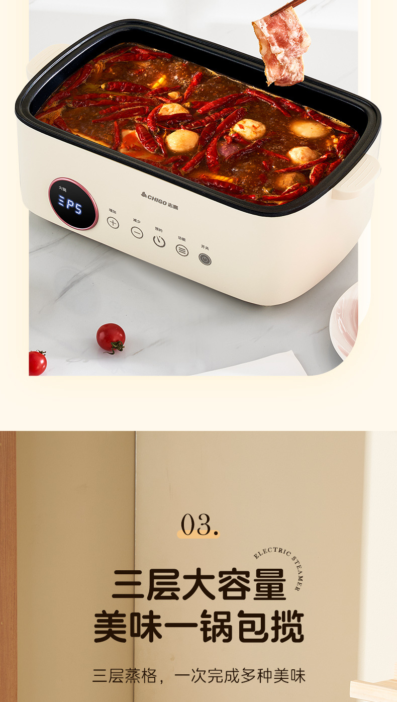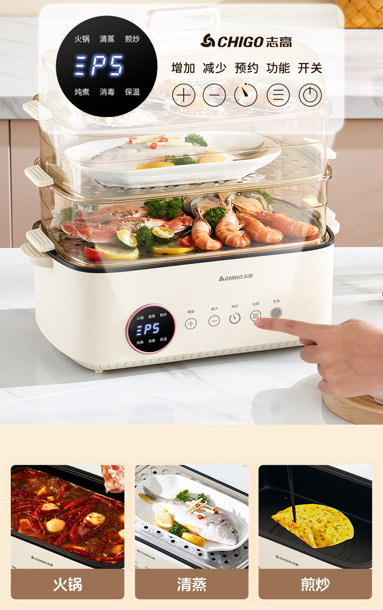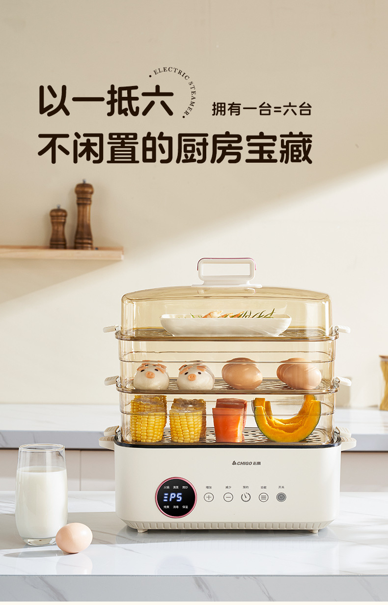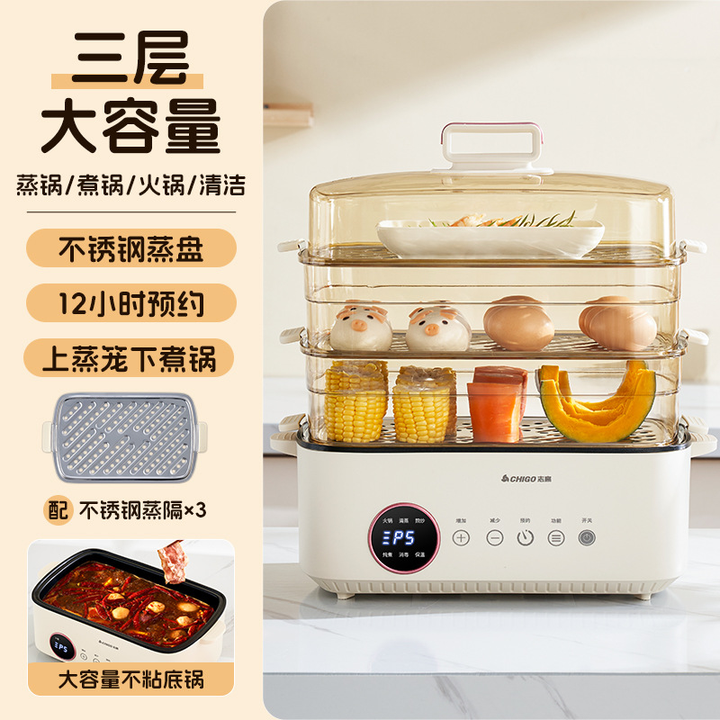 지고 전기찜기 3단 대용량 찜솥 다기능 가정용 다층 스마트 예약 자동 전원 차단 기능