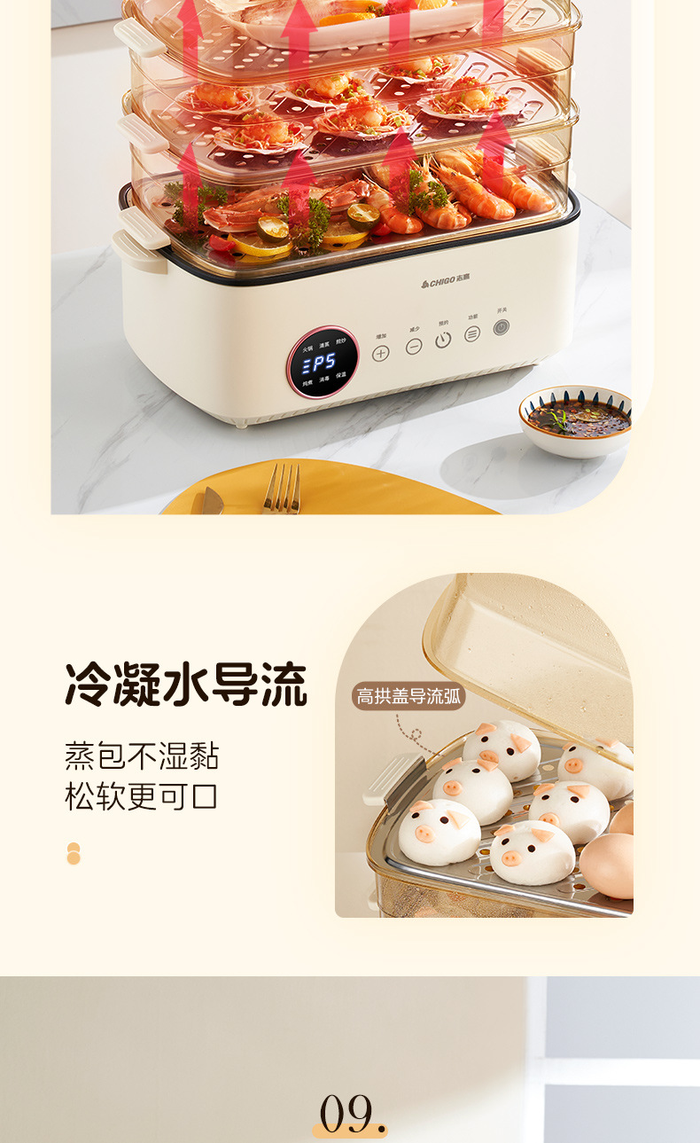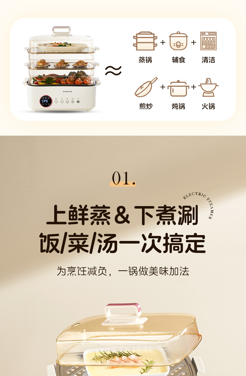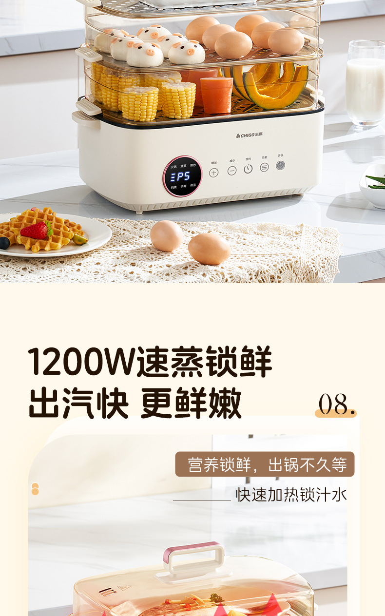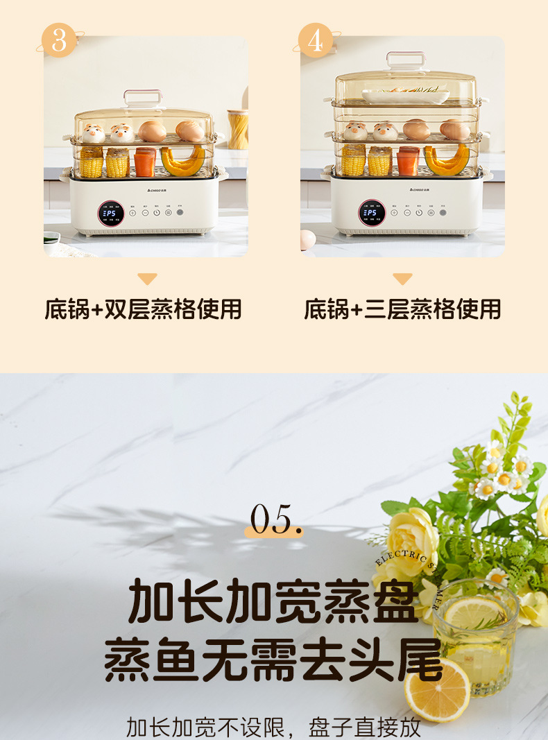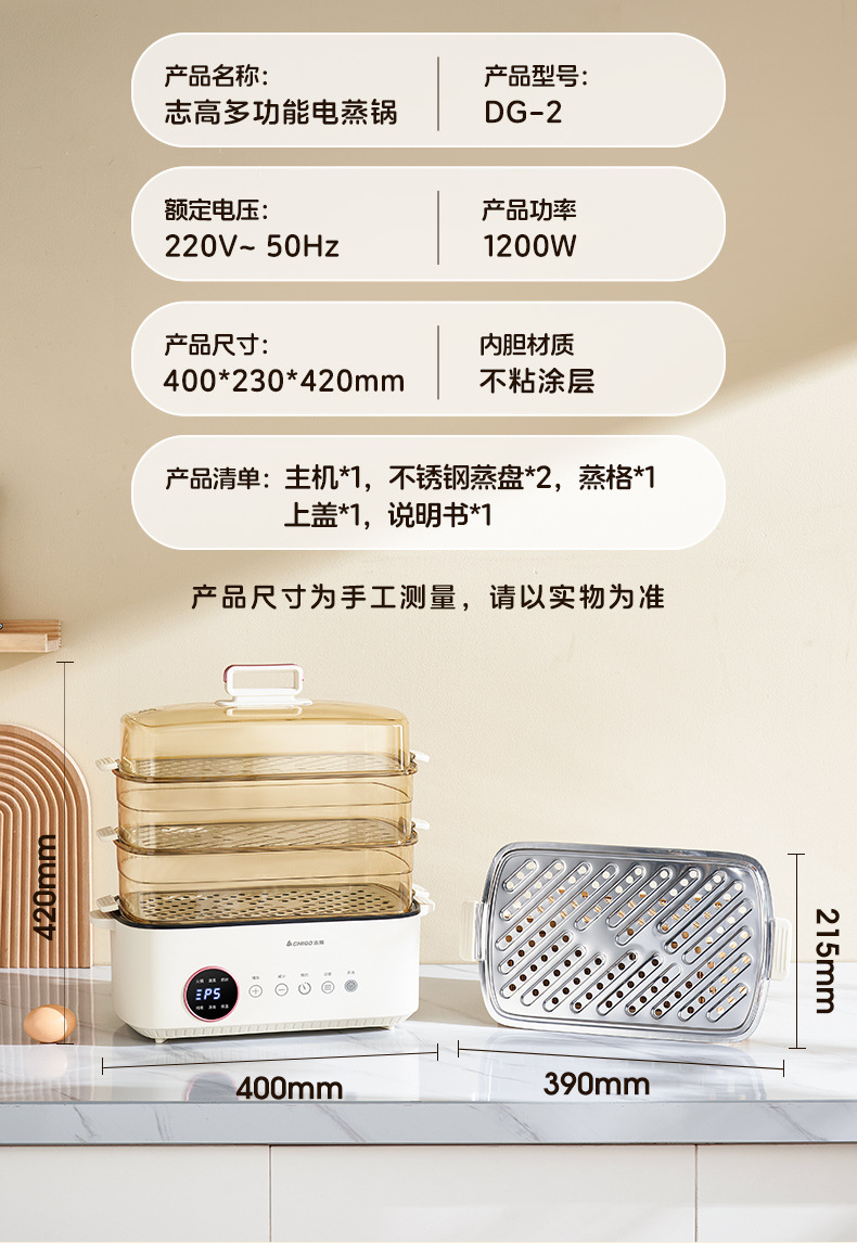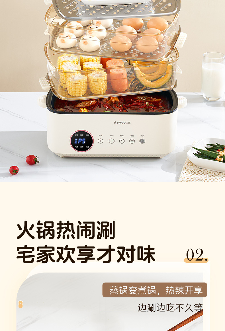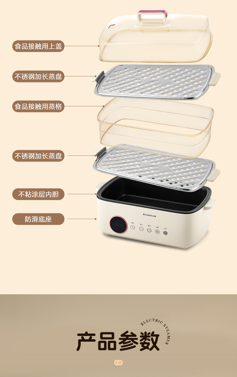 지고 전기찜기 3단 대용량 찜솥 다기능 가정용 다층 스마트 예약 자동 전원 차단 기능