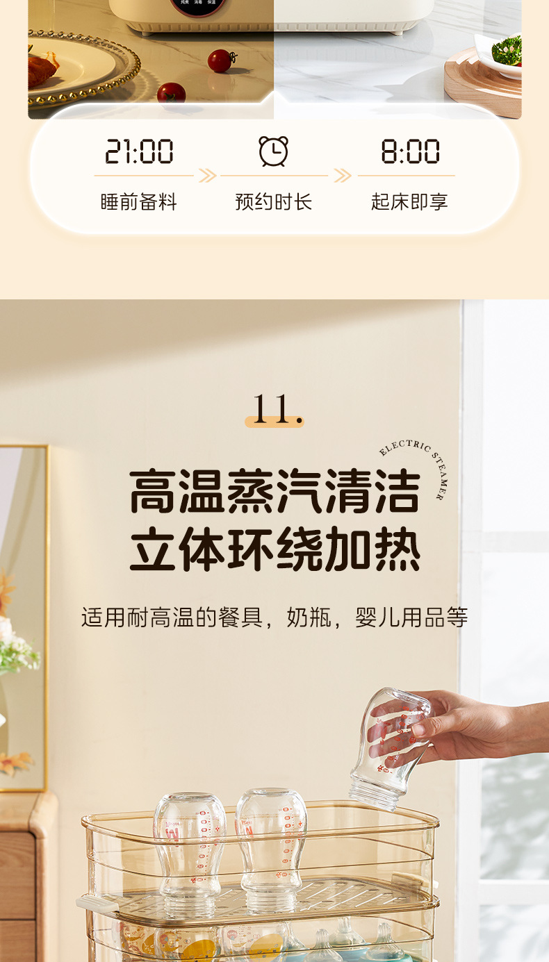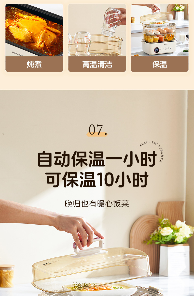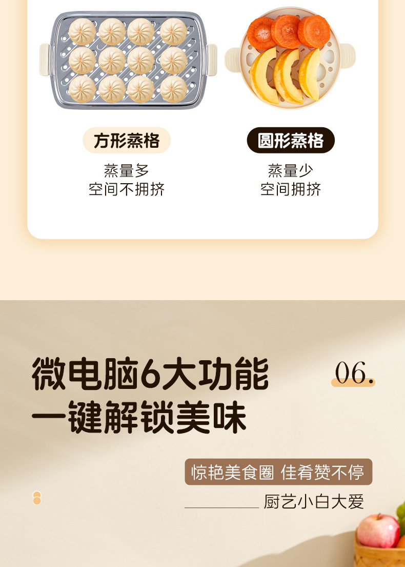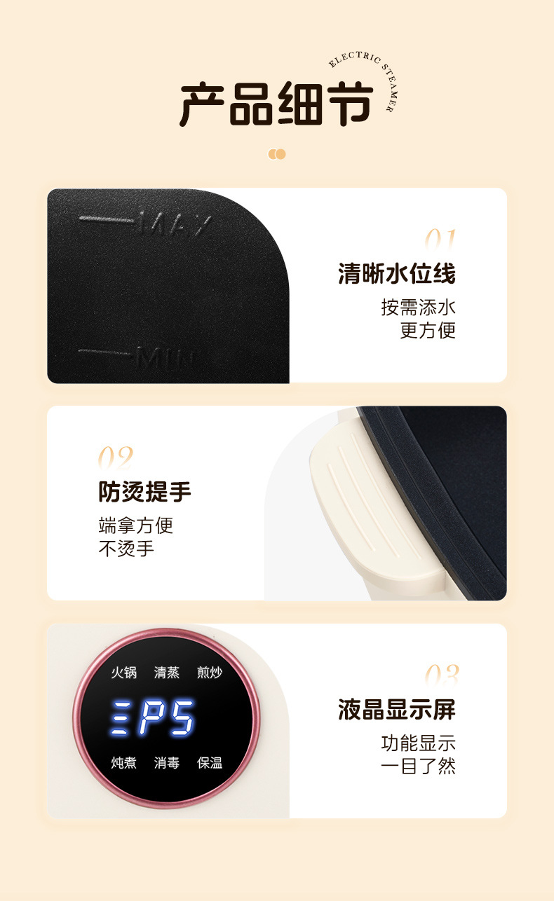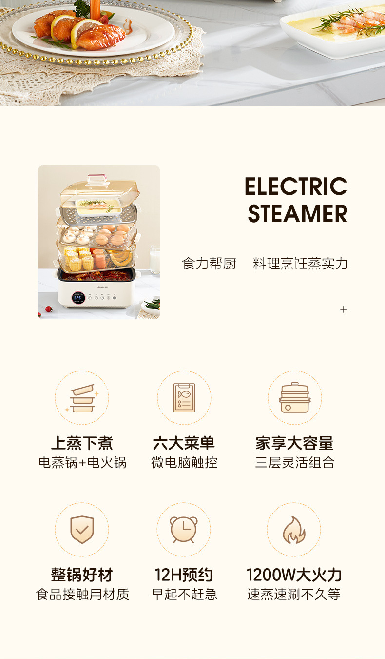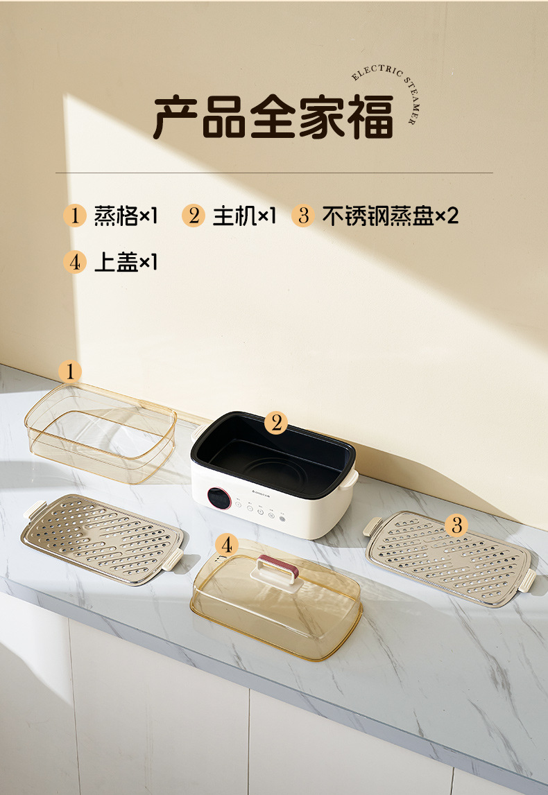 지고 전기찜기 3단 대용량 찜솥 다기능 가정용 다층 스마트 예약 자동 전원 차단 기능