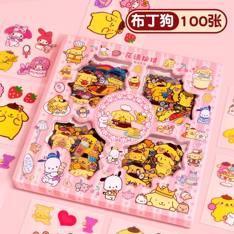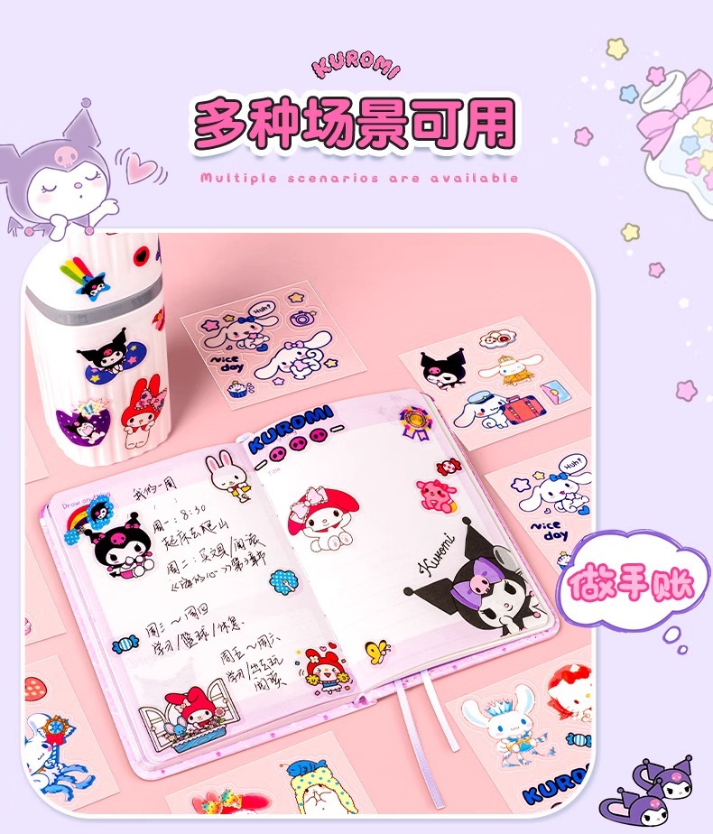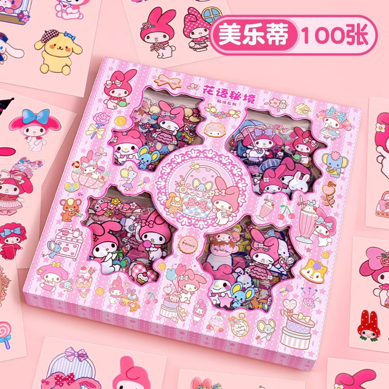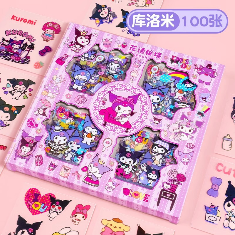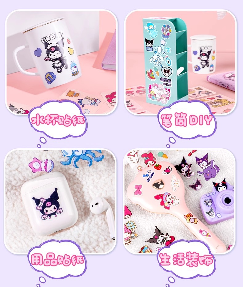 Sanrio Goka 스티커 100 반복 없음 Kulomi Meruti 애완 동물 손 계정 스티커 만화 물 컵 스티커