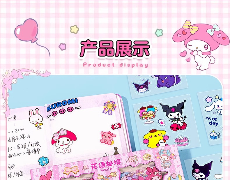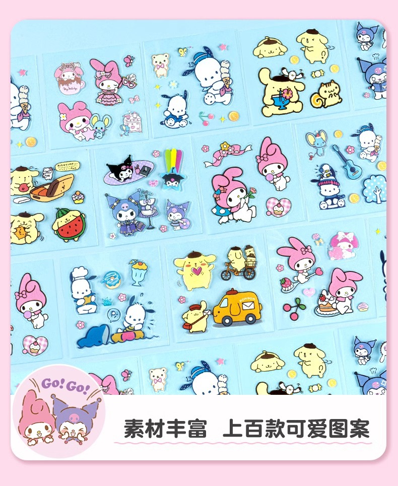 Sanrio Goka 스티커 100 반복 없음 Kulomi Meruti 애완 동물 손 계정 스티커 만화 물 컵 스티커스토어 가기