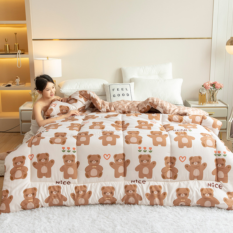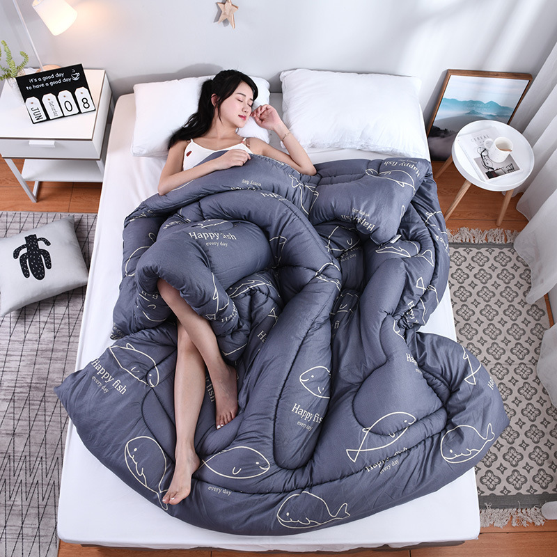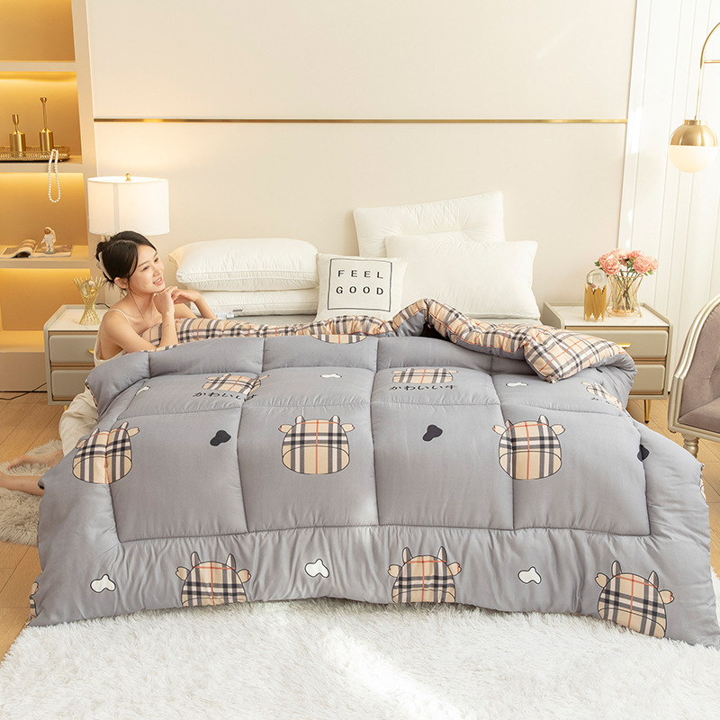 새로운 두꺼운 깃털 실크 이불 따뜻한 이불 코어 인쇄 봄과 가을 이불 학생 기숙사 선물 겨울 이불 침구 도매